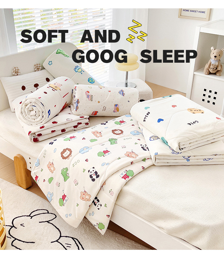 2025 봄 여름 신상품 어린이 여름 이불 니트 면 여름 시원한 이불 유치원 이불 아이스크림 시원한 이불 에어컨 이불