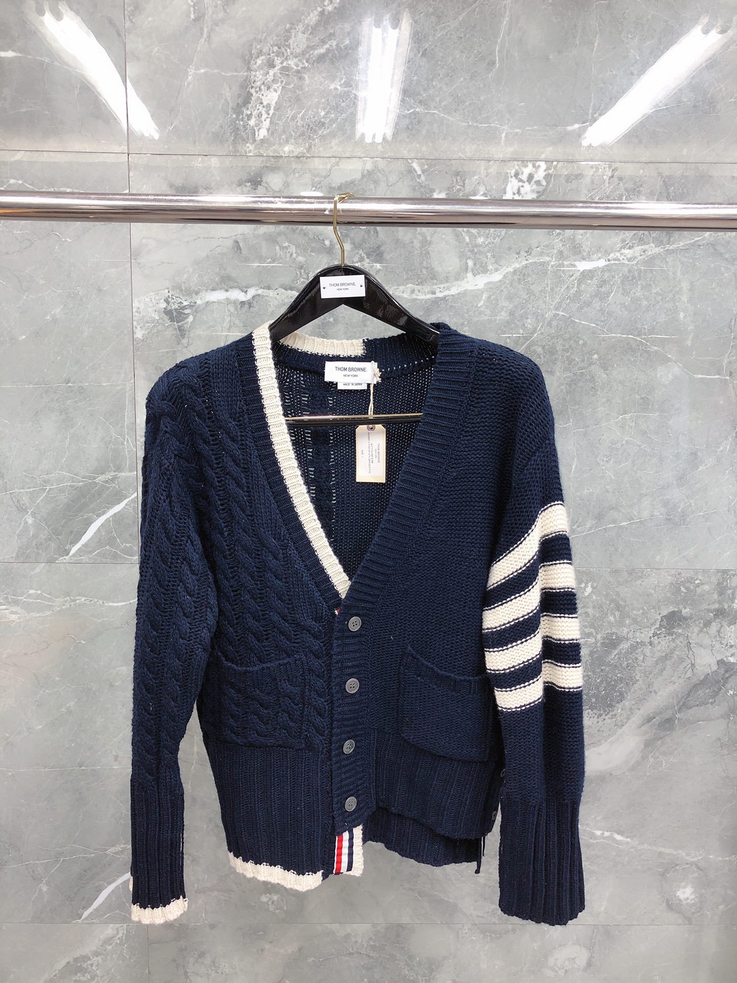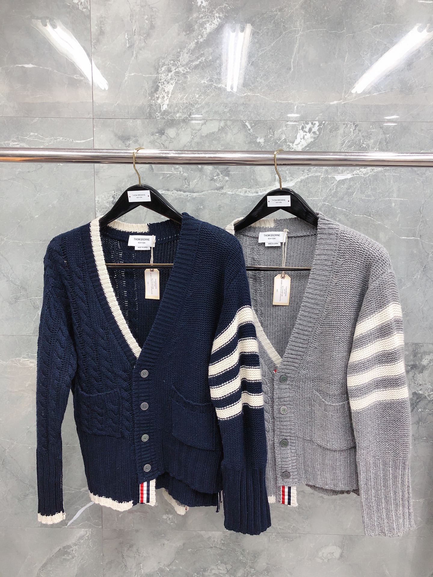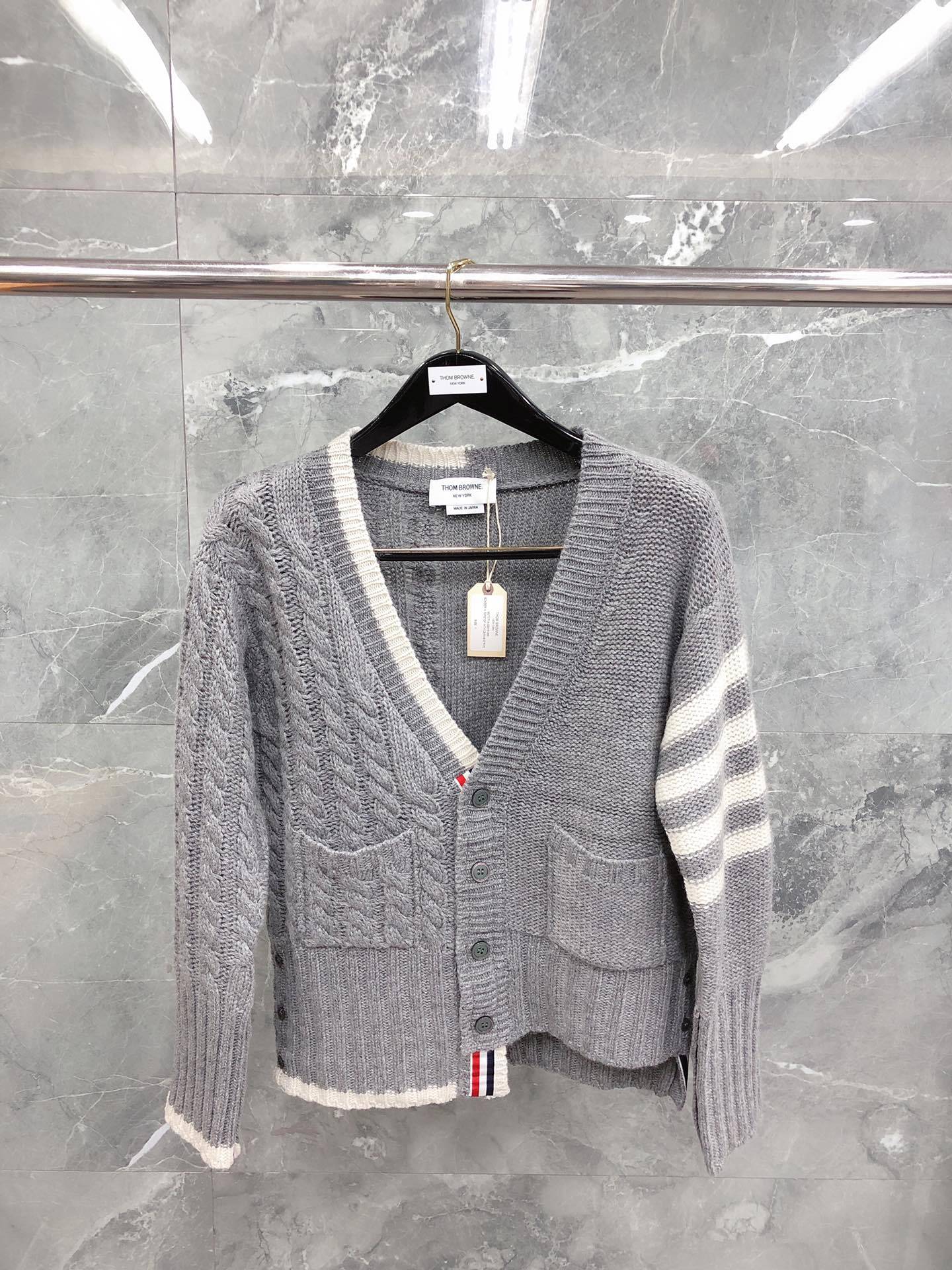 [팩토리 스토어] 하이 퀄리티 TB 카디건 불규칙한 클래식 4 바 캐주얼 V넥 울 카디건스토어 가기