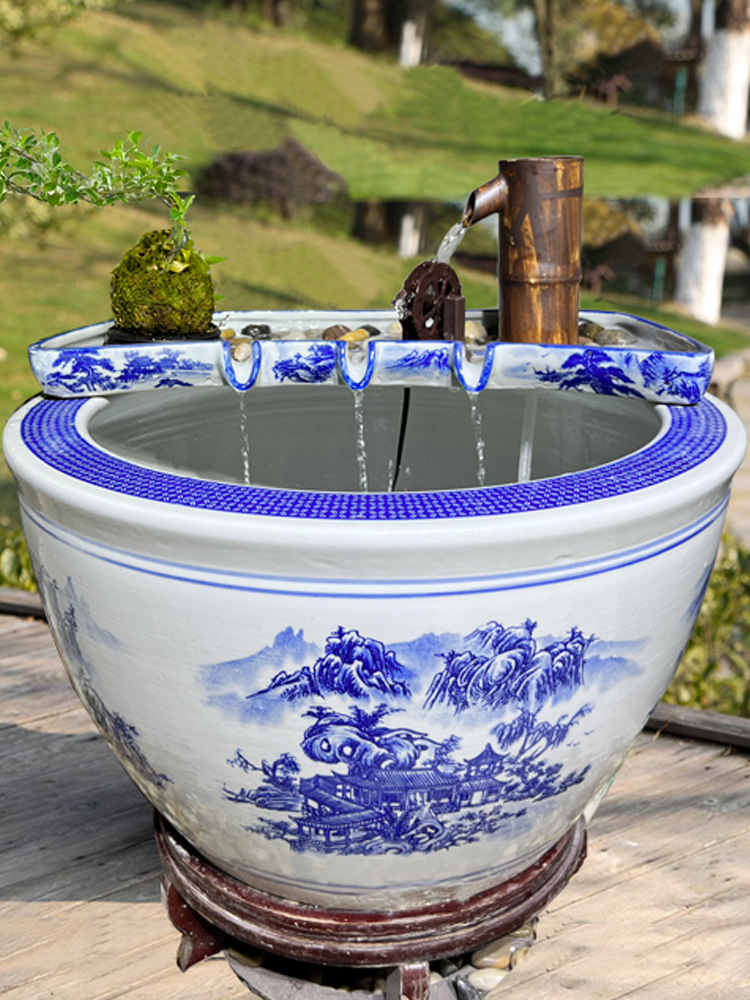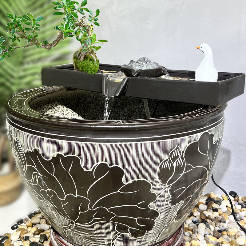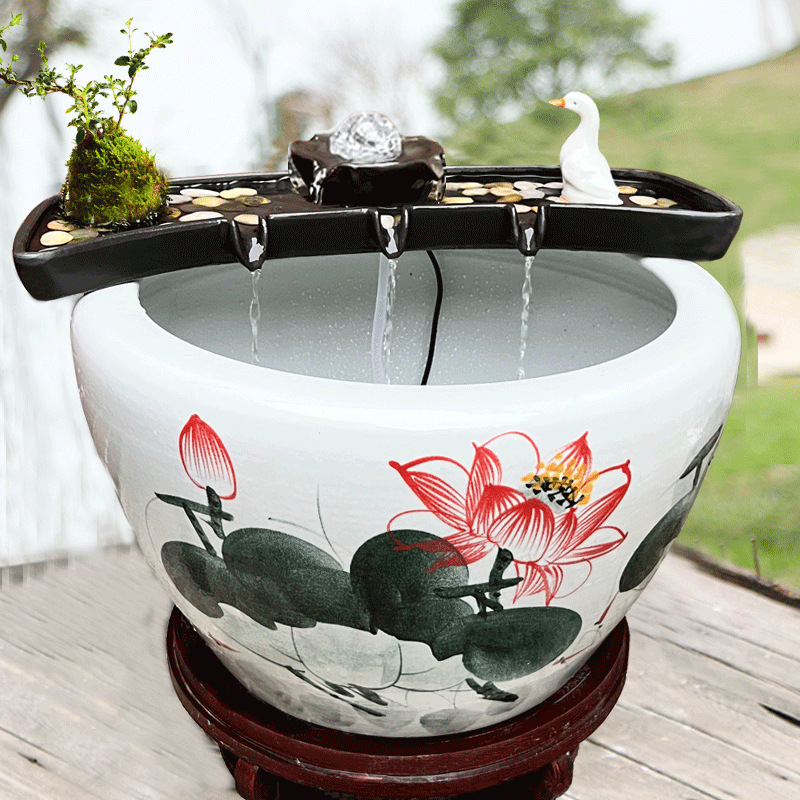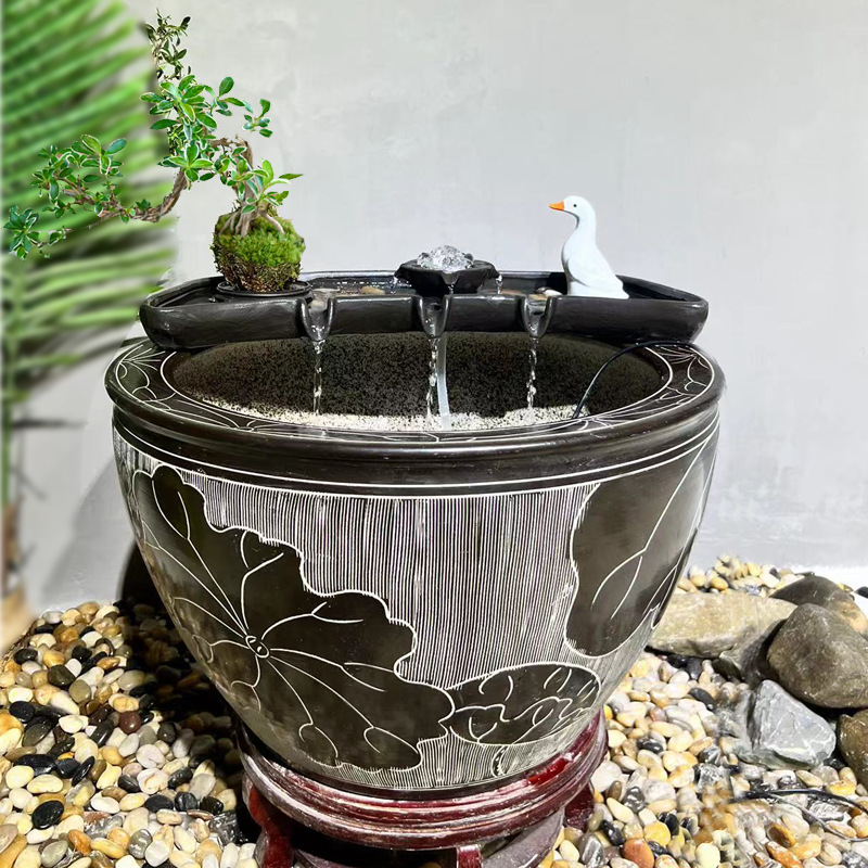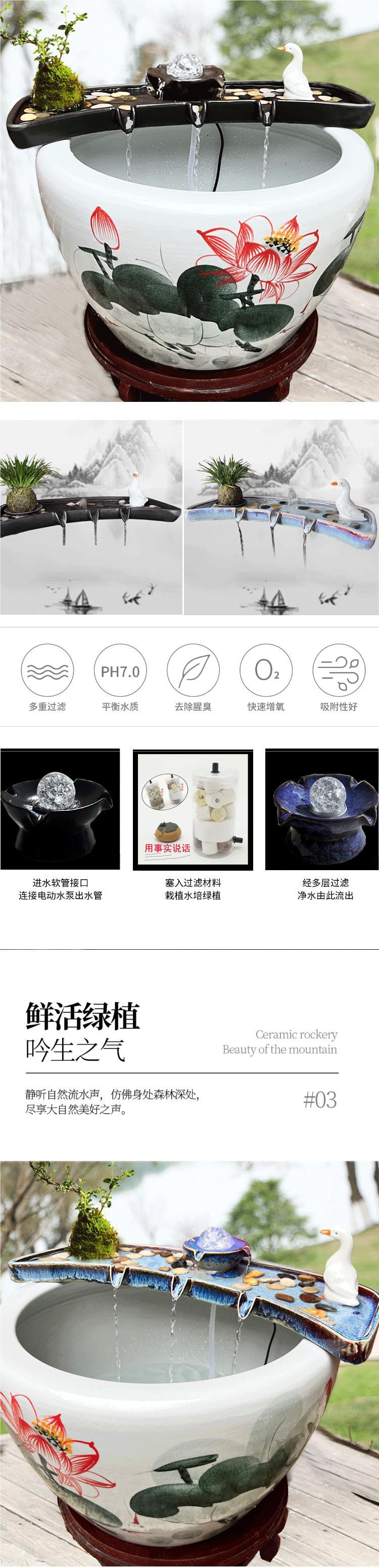 행운의 물 흐르는 물 순환 물 세라믹 물고기 탱크 순환 물 장식품 필터 통풍 돌 트로프 마이크로 조경