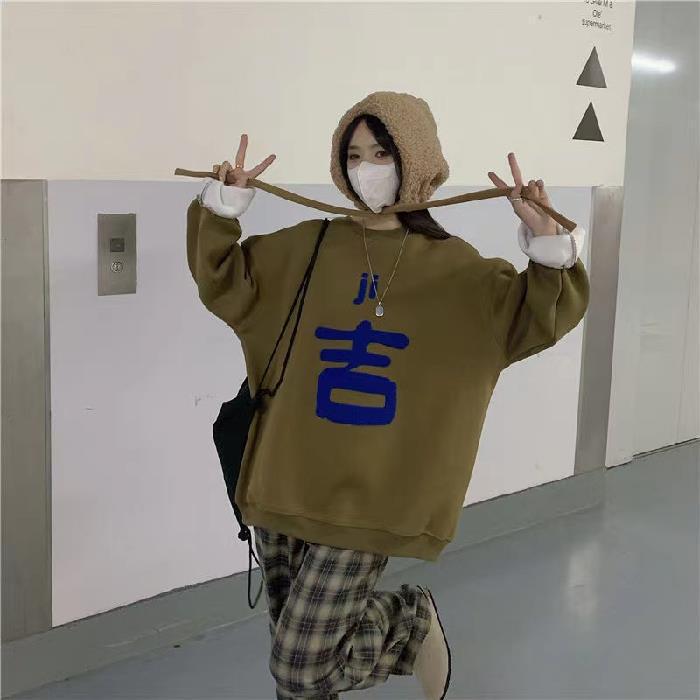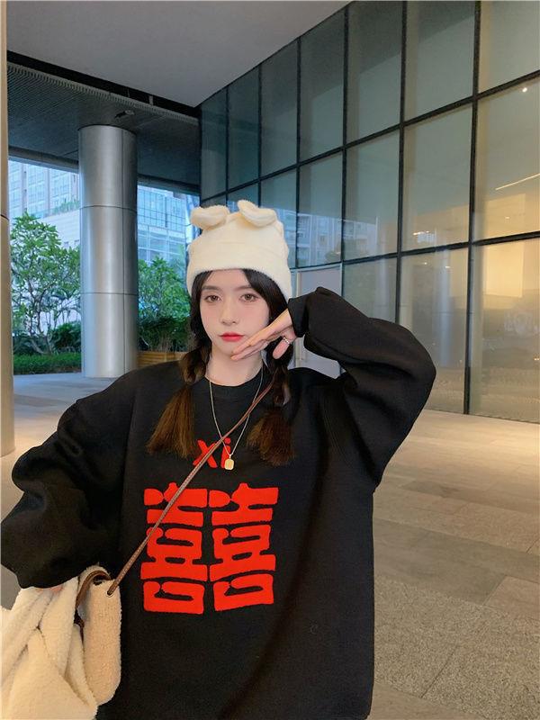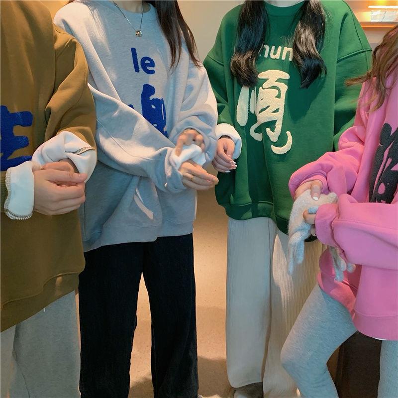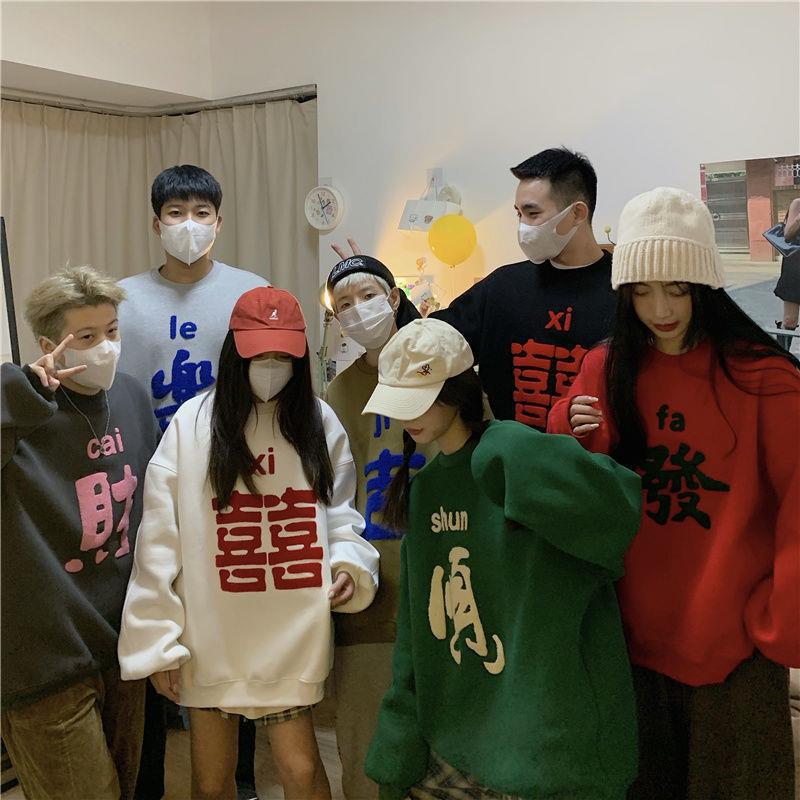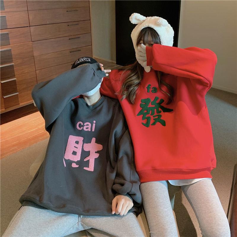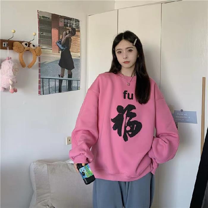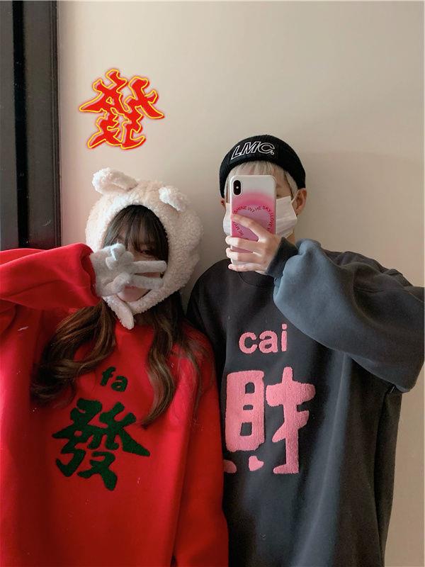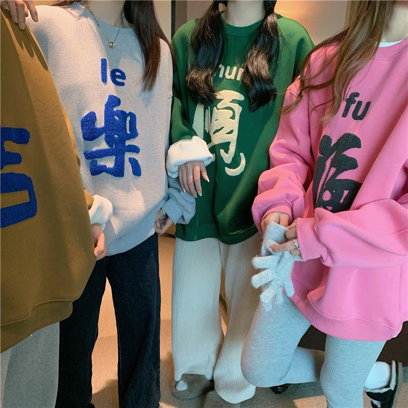 많은 수의 재고 # 기모 두꺼운 스웨터 여성 자수 중국 스타일 국가 패션 라운드 넥 커플은 남성과 여성에 기모 가을과 겨울에 착용합니다.스토어 가기