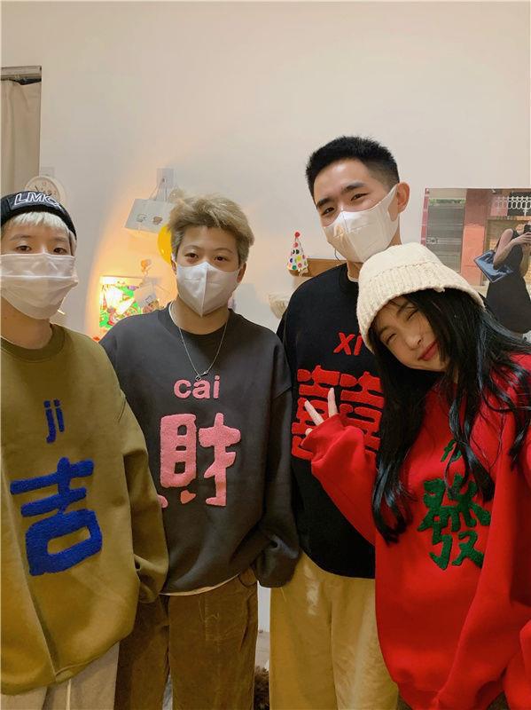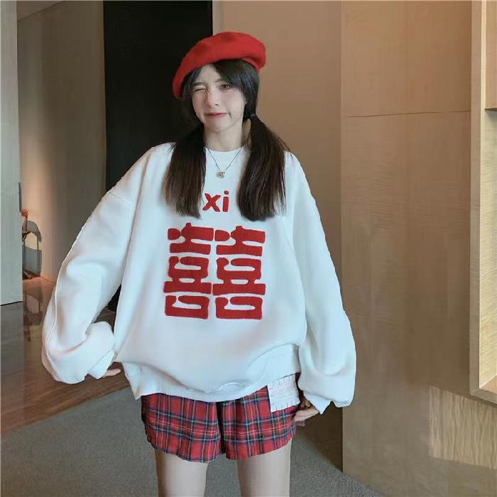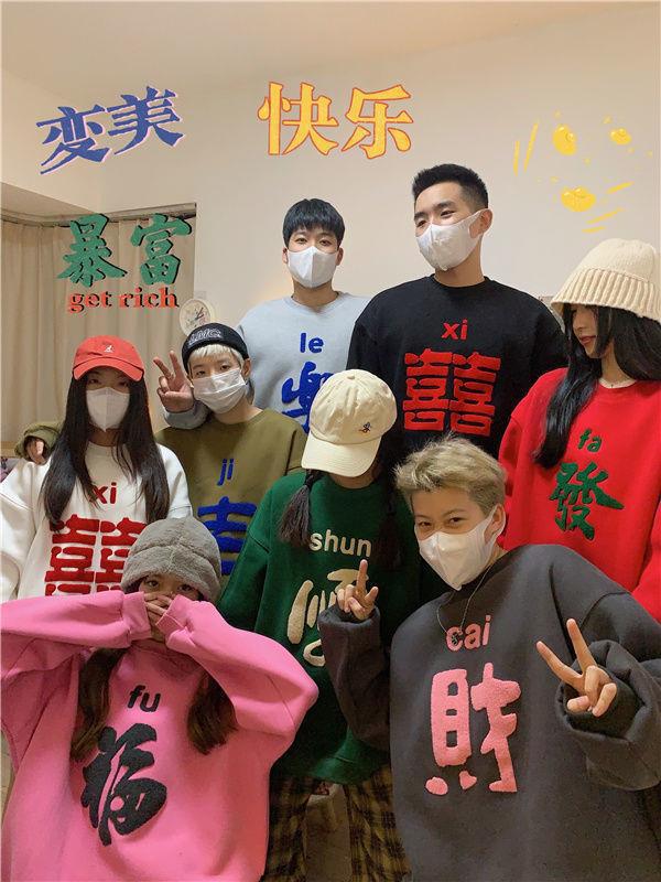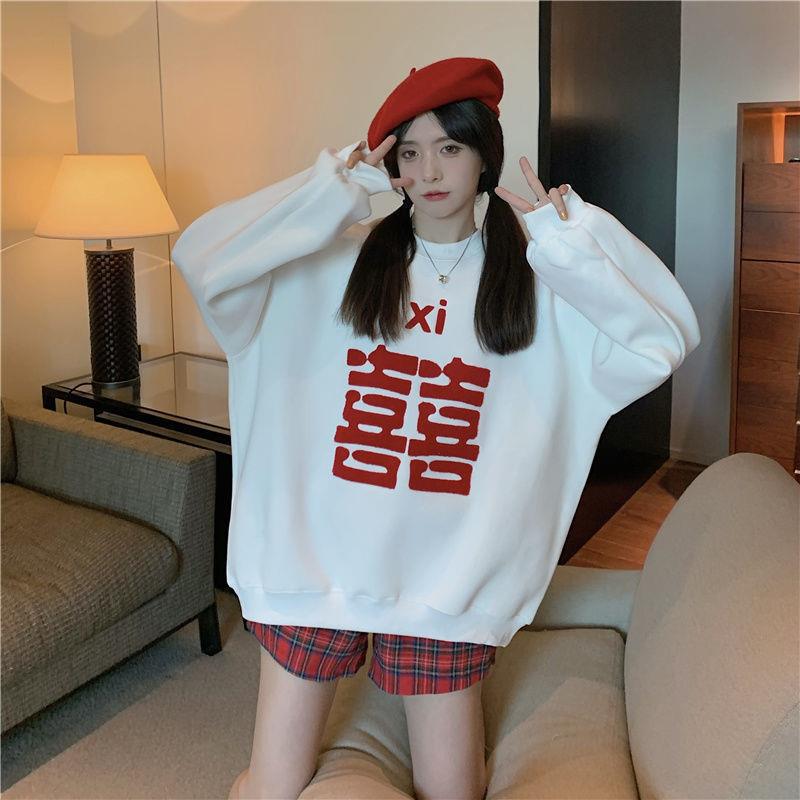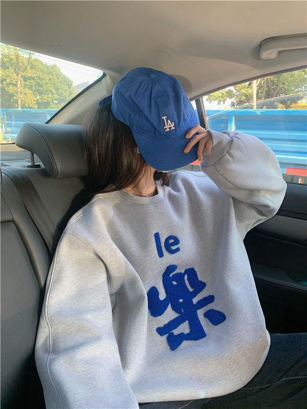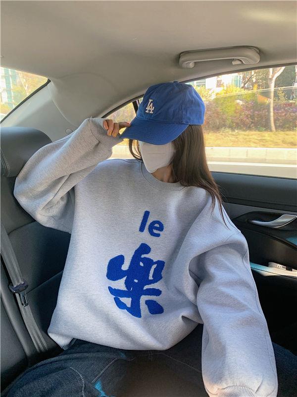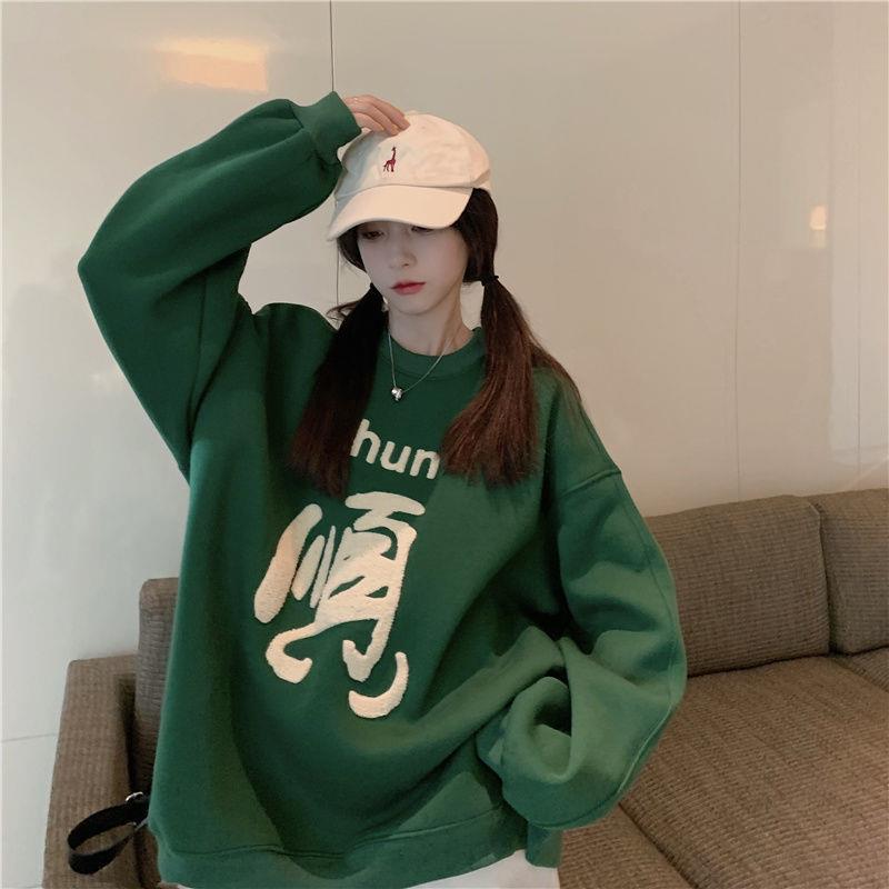 大量现货#加绒加厚卫衣女刺绣中国风国潮圆领情侣装秋冬加绒男女