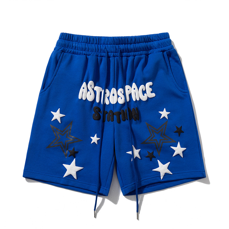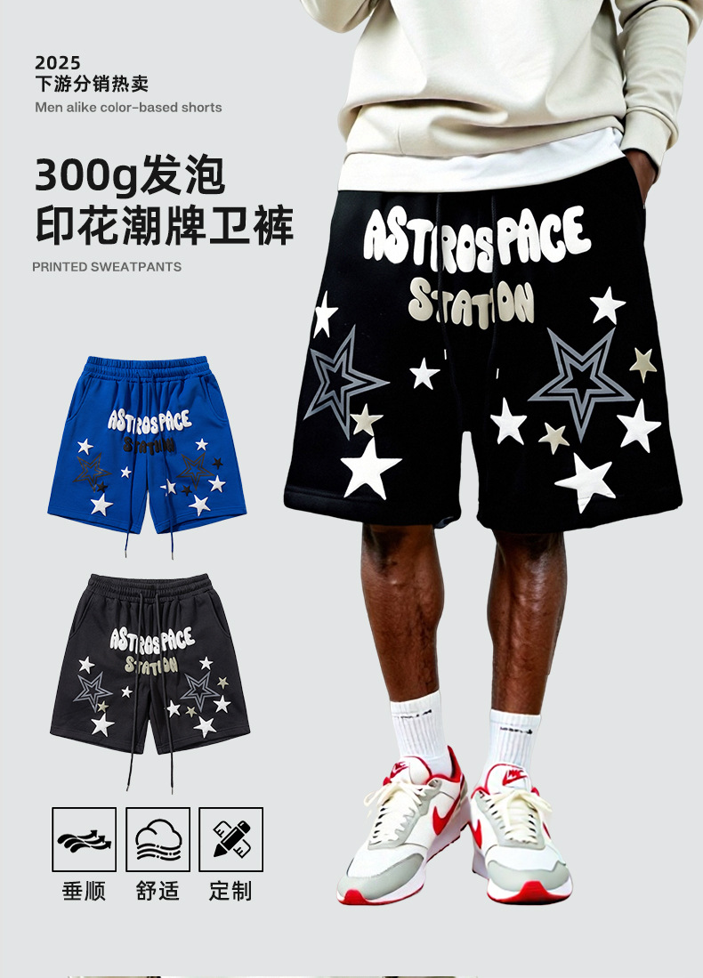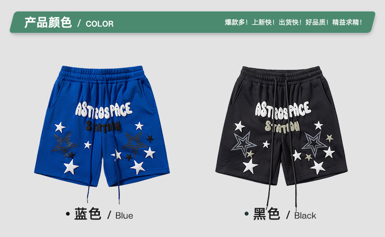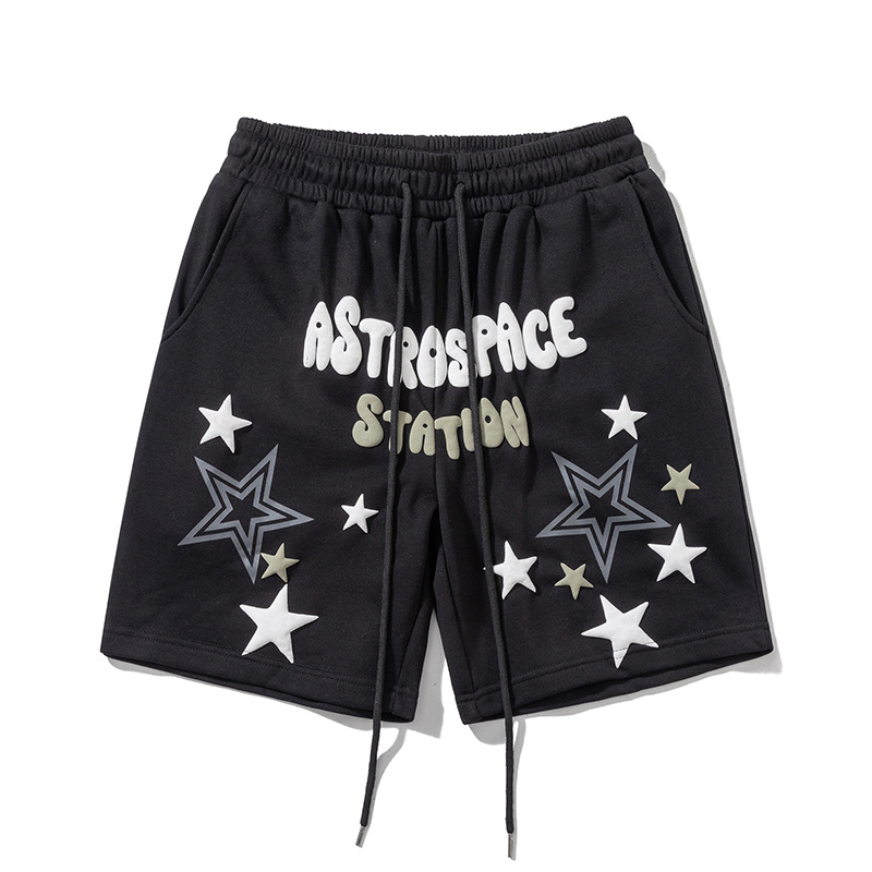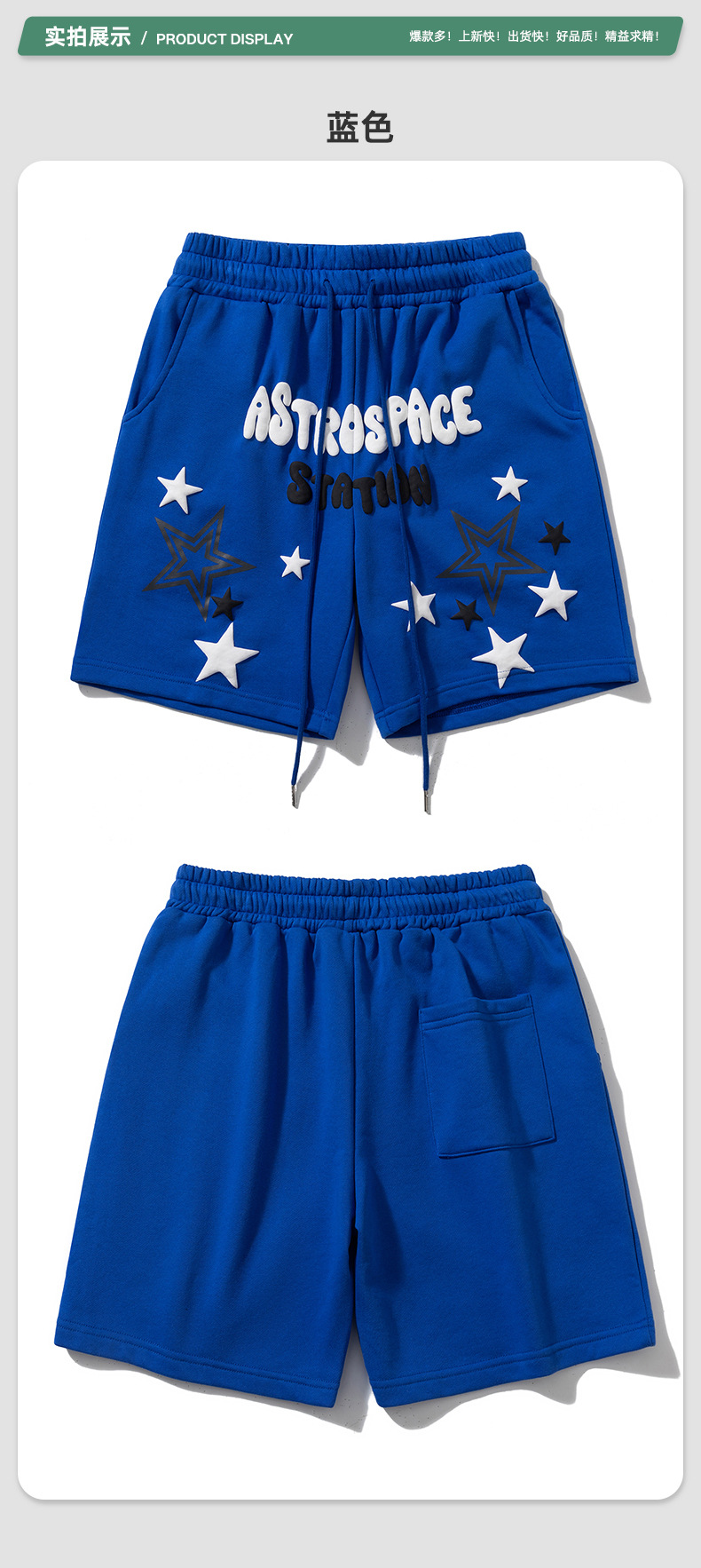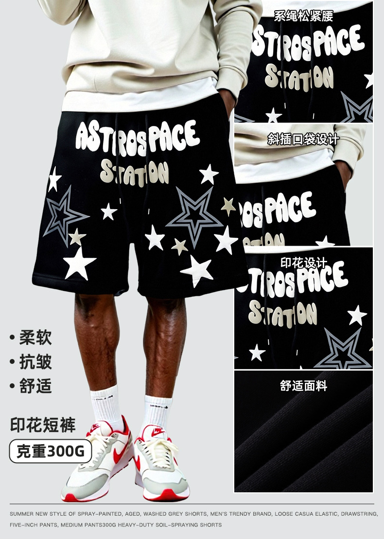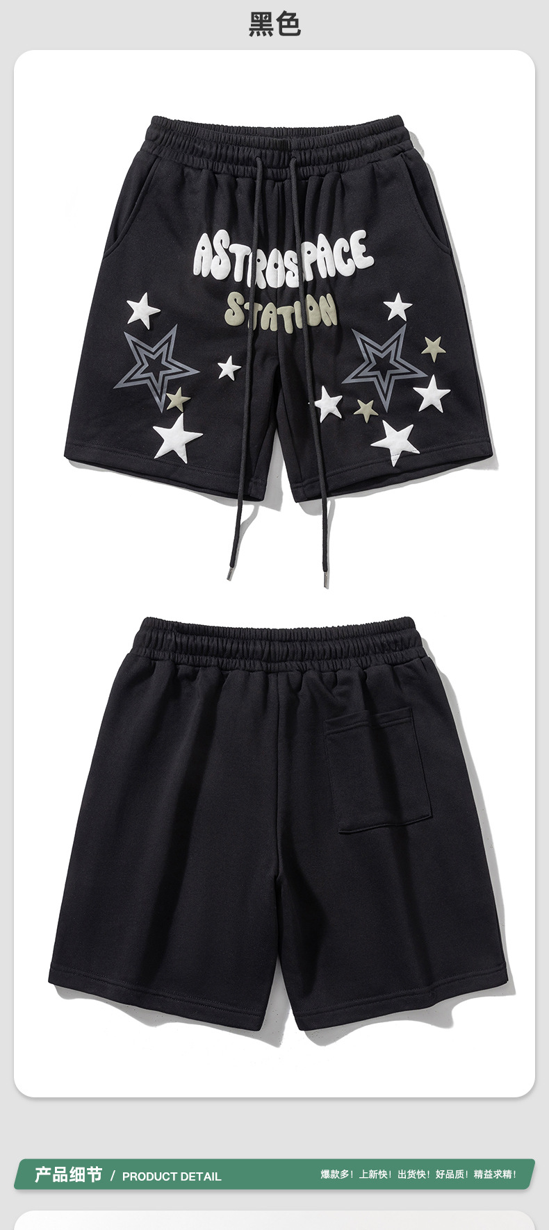 아메리칸 레트로 스타 레터 스포츠 캐주얼 쇼트 남자 여름 땀 바지 디자인 센스 4 점 농구 루즈 반바지