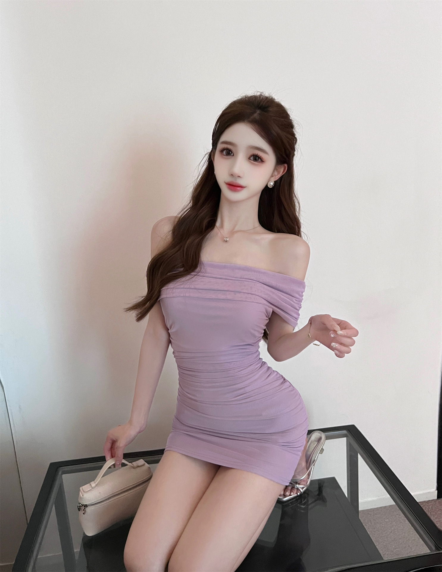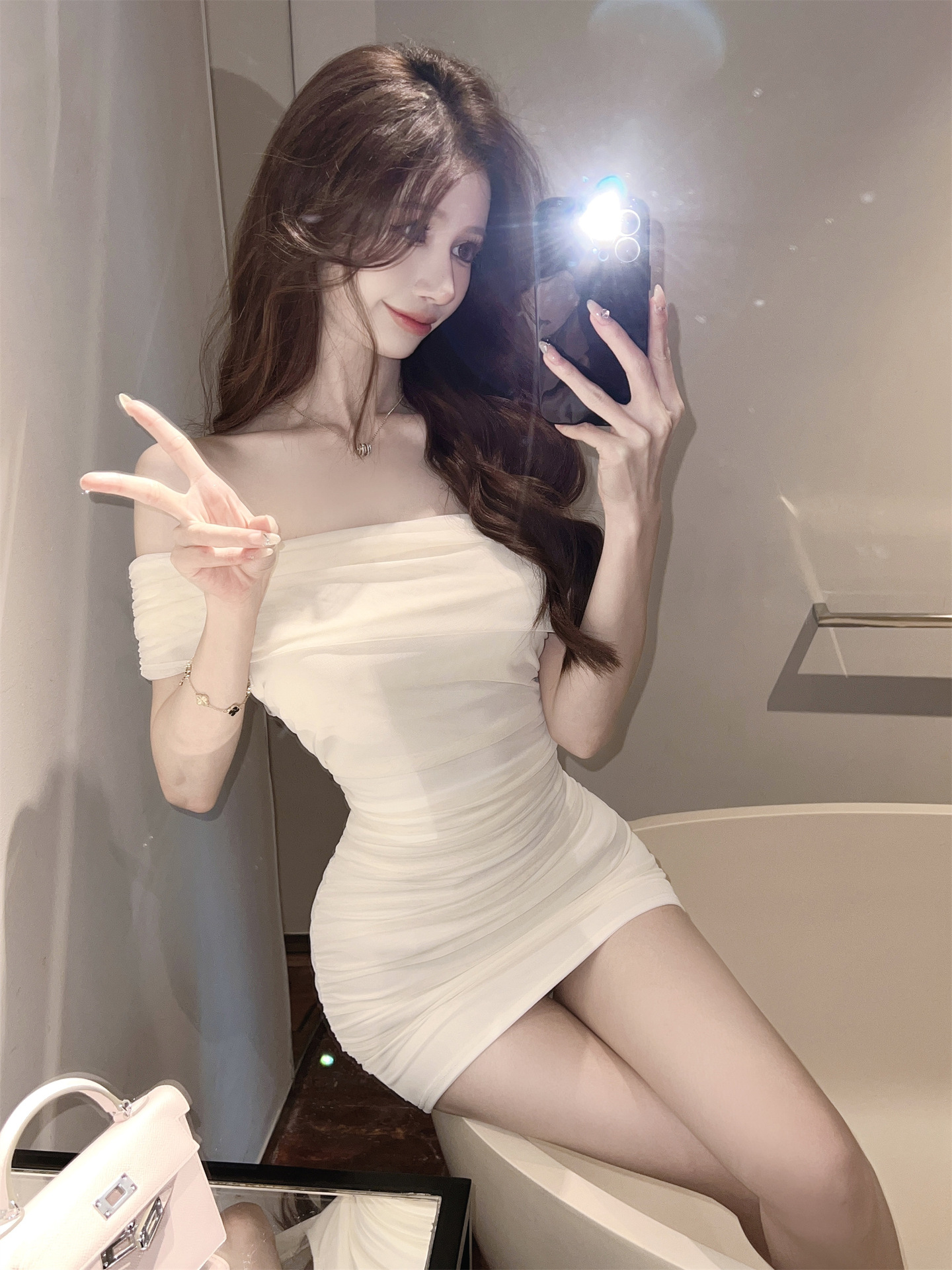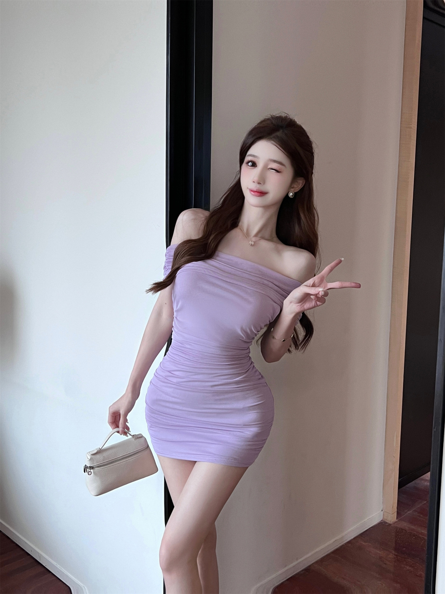 4377 뜨거운 소녀 순수한 욕망 스타일 섹시한 오프 숄더 튜브 탑 엉덩이 스커트 작은 기질 주름 슬리밍 원피스