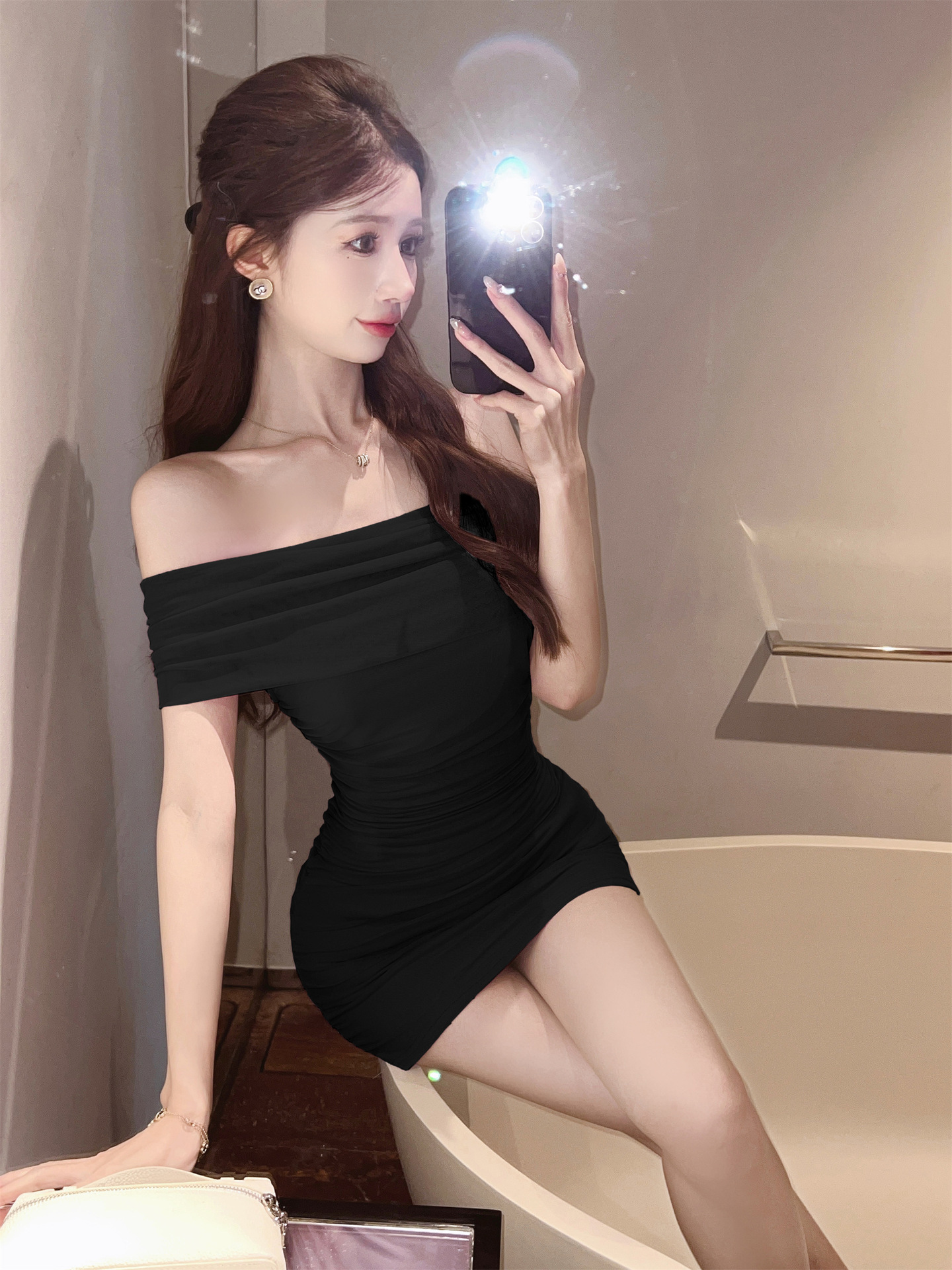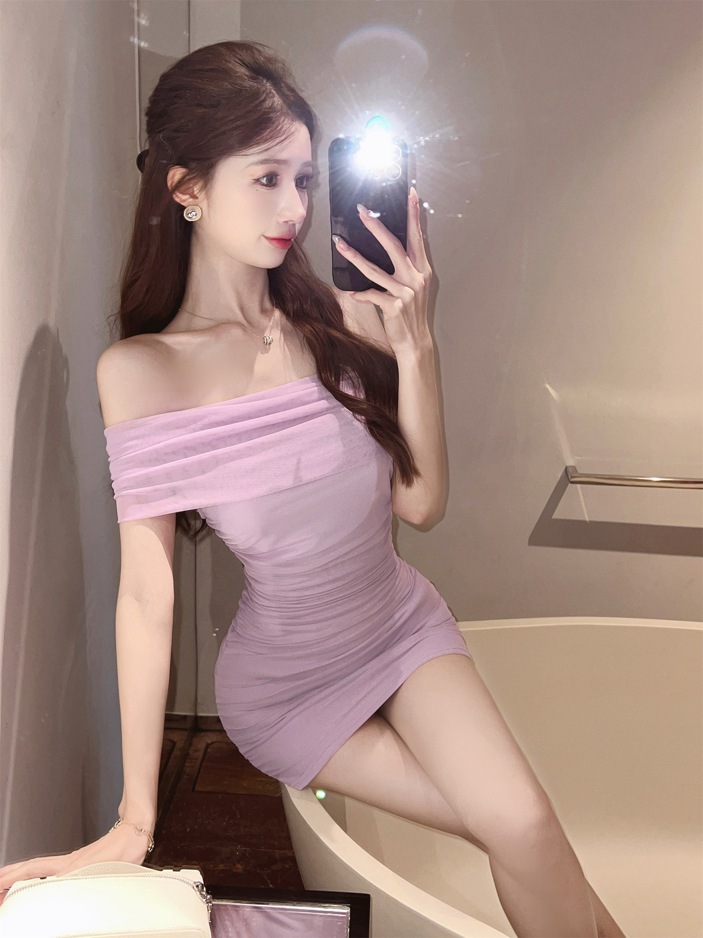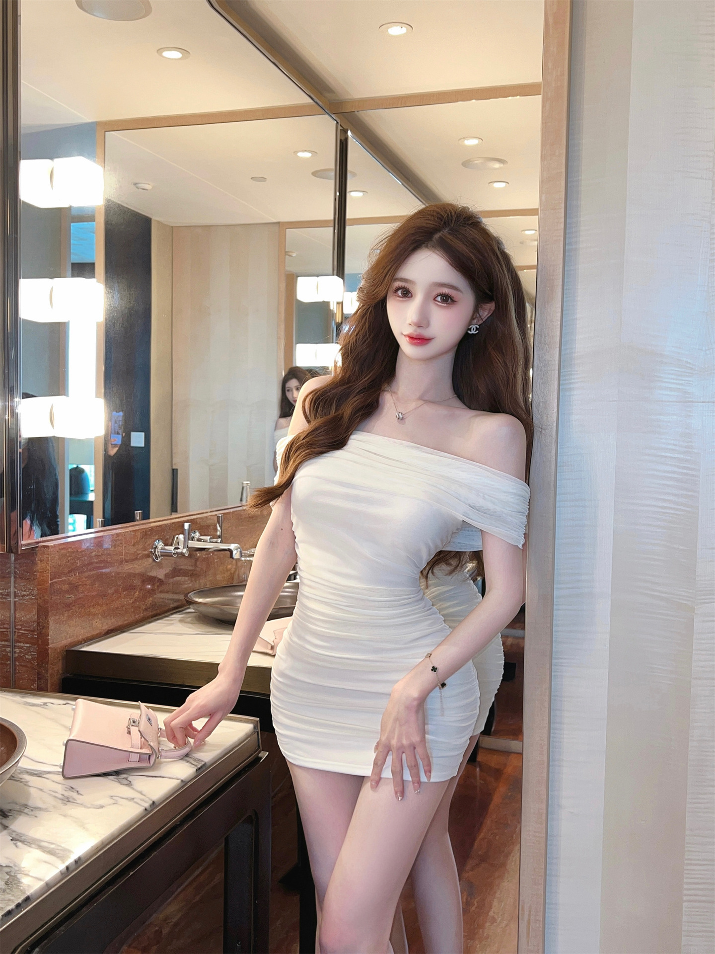 4377 뜨거운 소녀 순수한 욕망 스타일 섹시한 오프 숄더 튜브 탑 엉덩이 스커트 작은 기질 주름 슬리밍 원피스