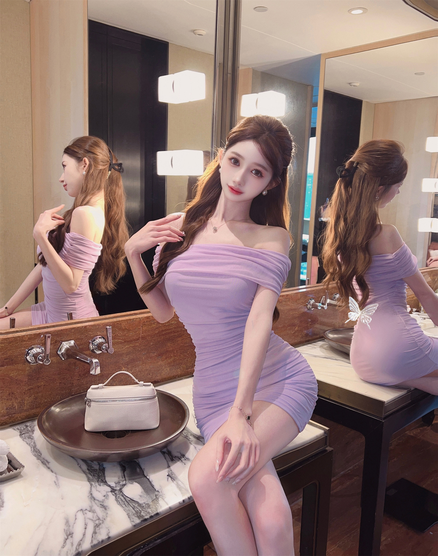 4377 뜨거운 소녀 순수한 욕망 스타일 섹시한 오프 숄더 튜브 탑 엉덩이 스커트 작은 기질 주름 슬리밍 원피스스토어 가기