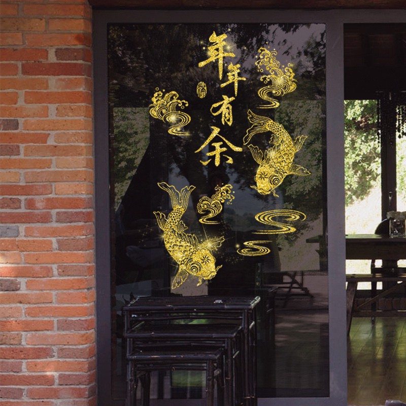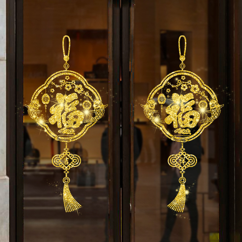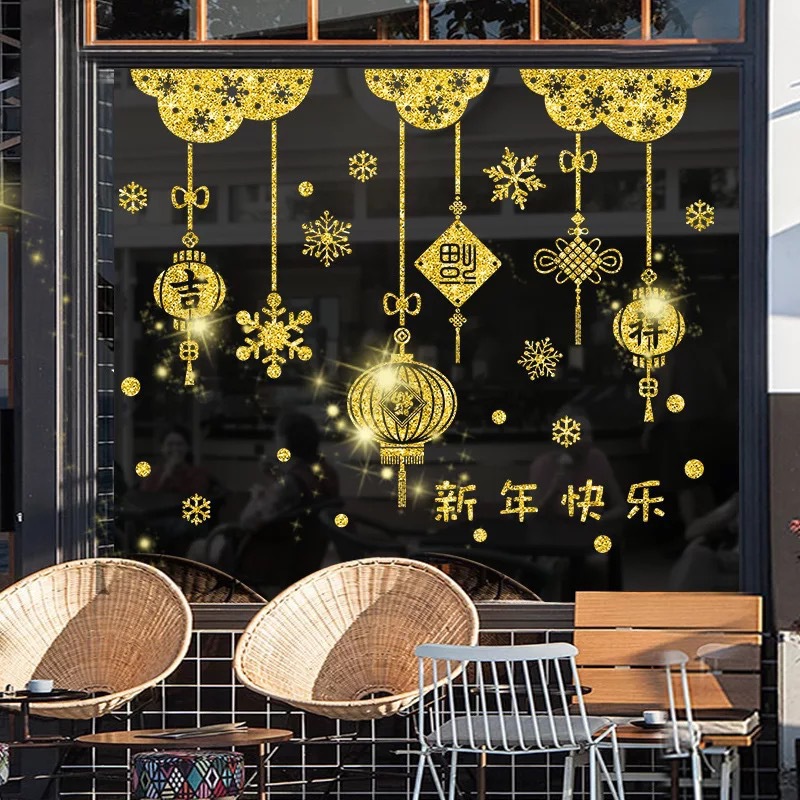 새해 봄 축제 장식 황금 반짝이 스티커 쇼핑몰 상점 창 스티커 거실 발코니 유리 문 및 창 스티커