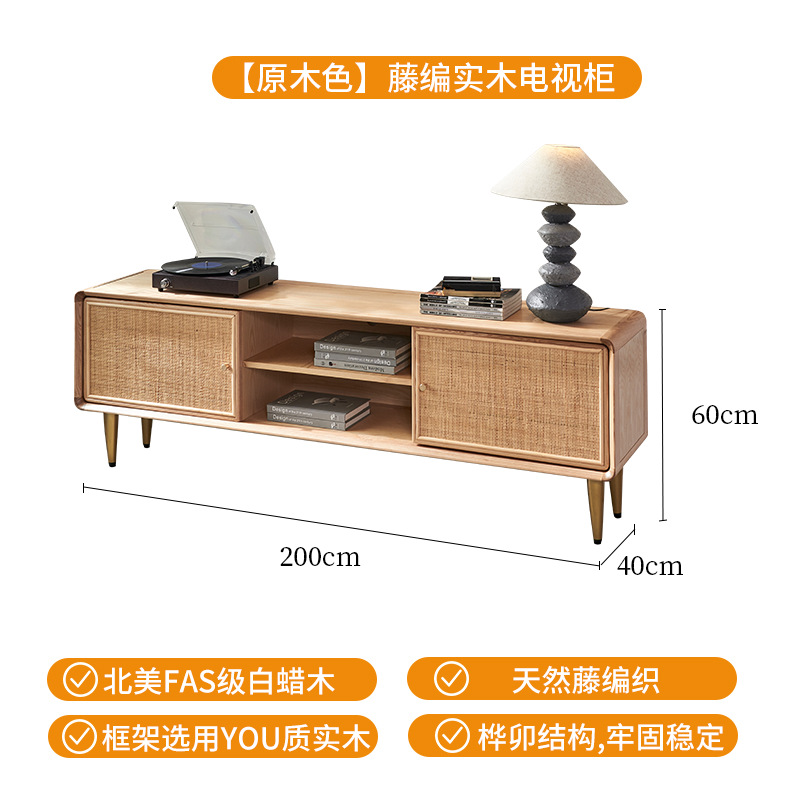 • [우드 컬러] 200cm 등나무 단단한 나무 TV 캐비닛