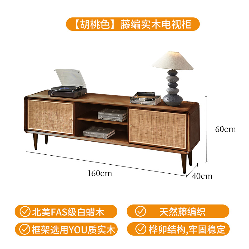 • [호두 색상] 160cm 등나무 단단한 나무 TV 캐비닛