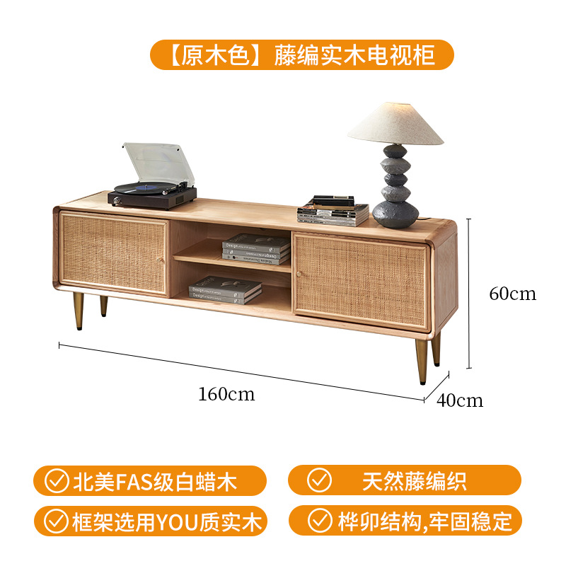 • [우드 컬러] 160cm 등나무 단단한 나무 TV 캐비닛