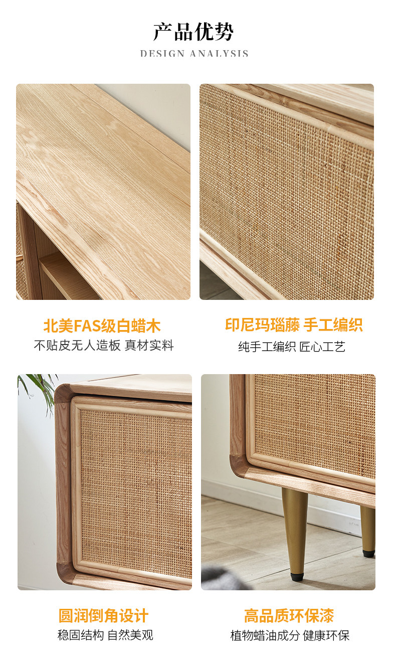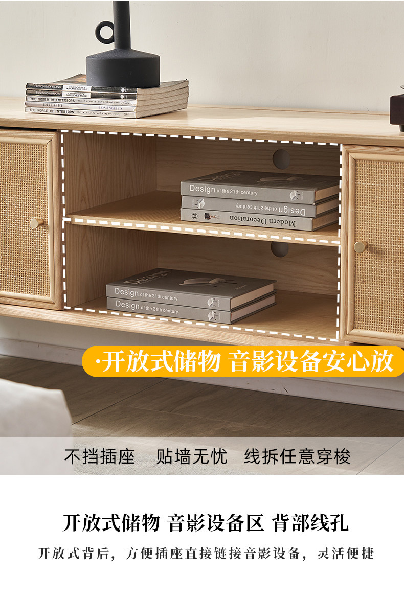 단단한 나무 TV 캐비닛 일본 현대 미니멀 한 거실 집 작은 아파트 오크 복고풍 스타일 등나무 짠 바닥 캐비닛 조합스토어 가기