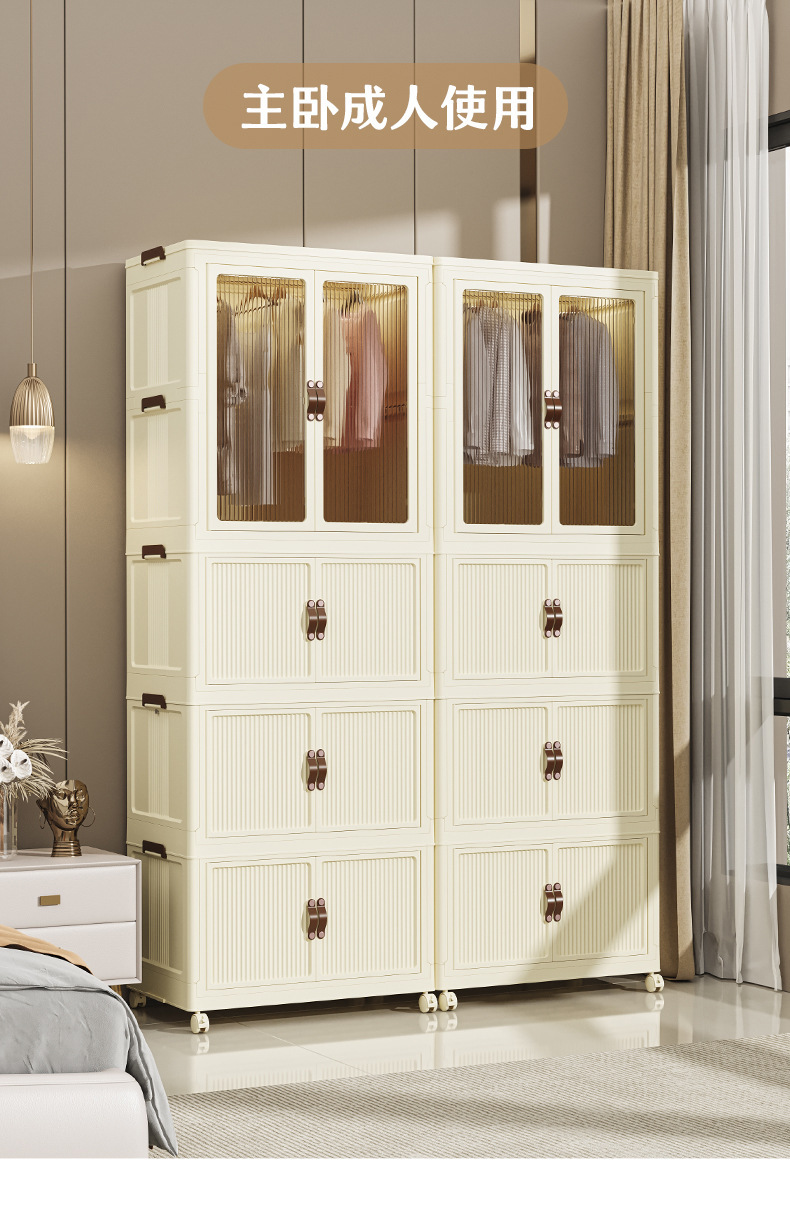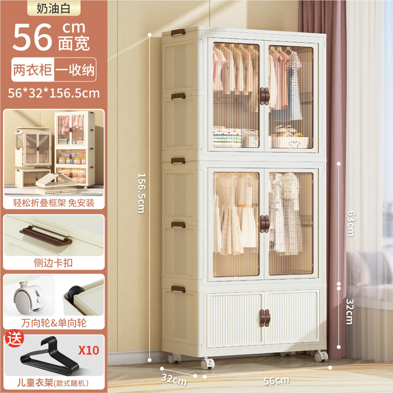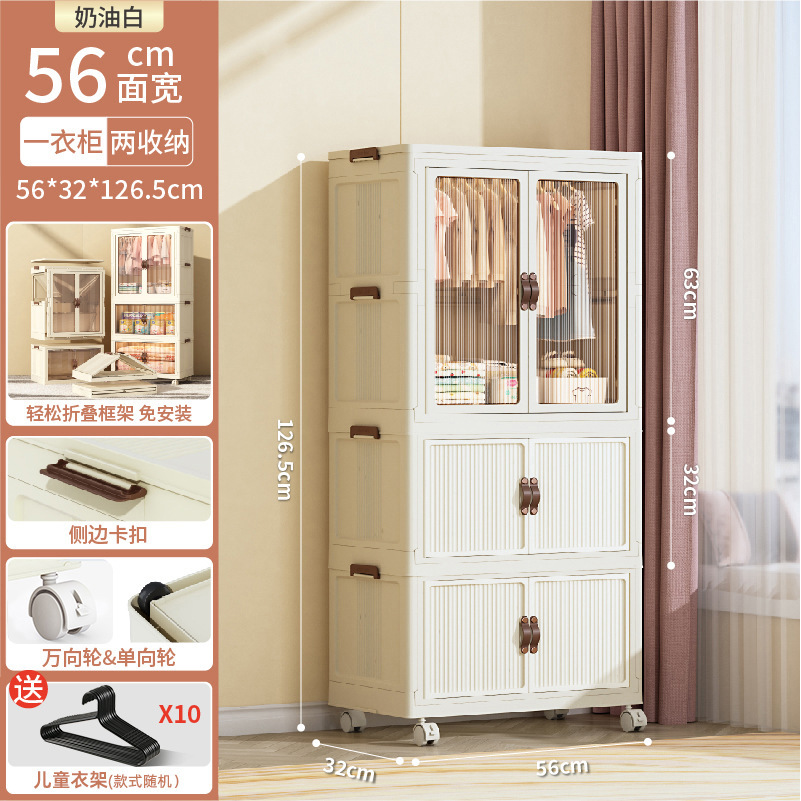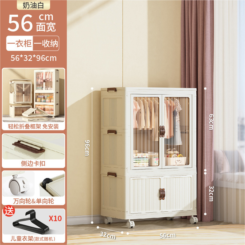 • 56CM 얼굴 너비-1 층 옷장 + 1 층 저장 상자-크림 화이트 [10 옷걸이 보내기]]
