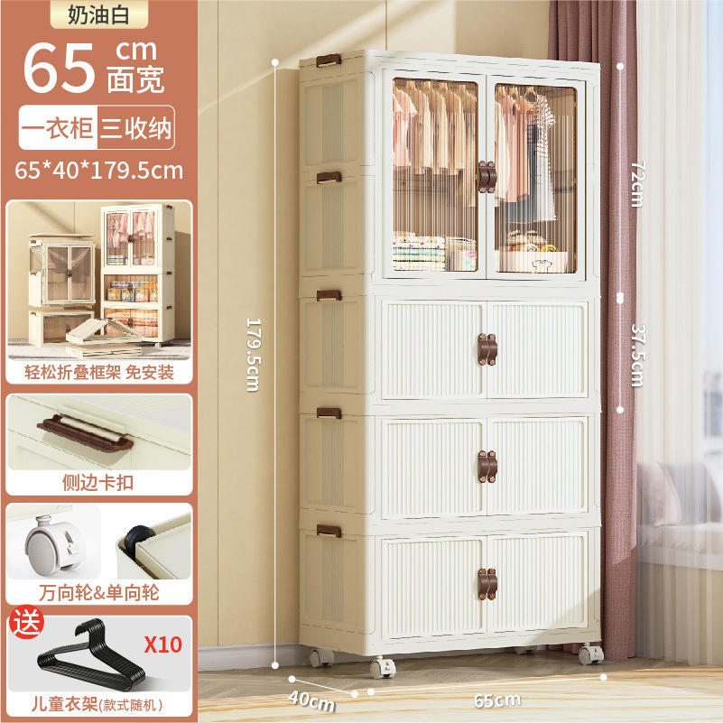 • 65CM 얼굴 너비-1 층 옷장 + 3 층 저장 상자-크림 화이트 [10 옷걸이 보내기]]