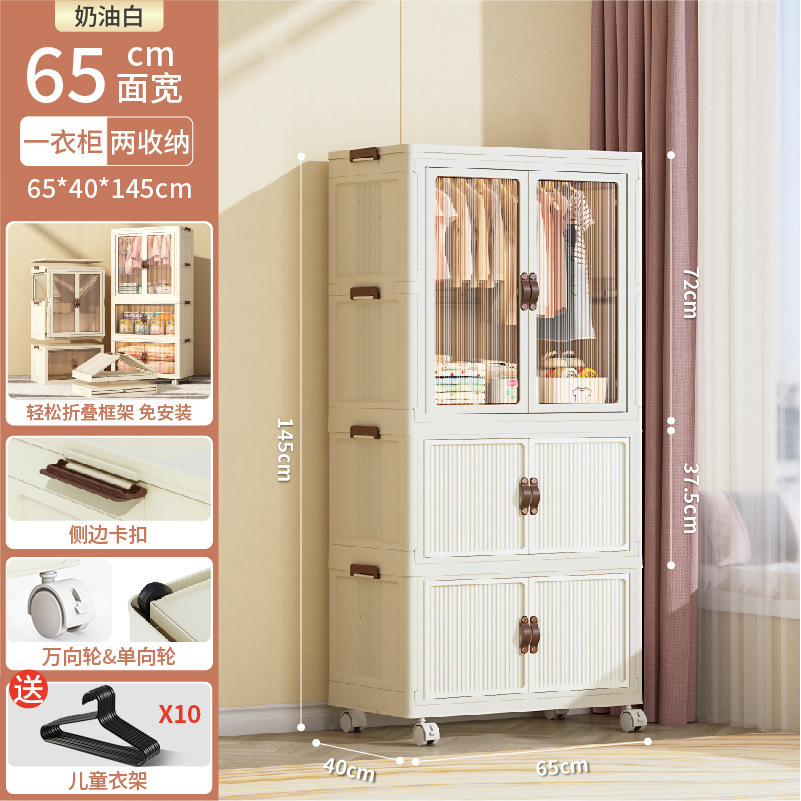 • 65CM 얼굴 너비-1 층 옷장 + 1 층 저장 상자-크림 화이트 [10 옷걸이 보내기]]