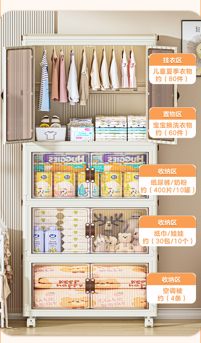 설치 무료 아기 옷장 어린이 옷 보관 상자 아기 작은 옷장 플라스틱 가정용 스낵 보관함