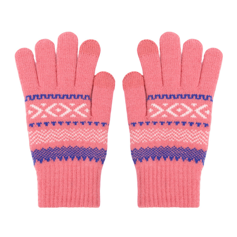 日系秋冬爆款羊毛撞色毛线针织手套复古提花加绒骑车触屏保暖手套