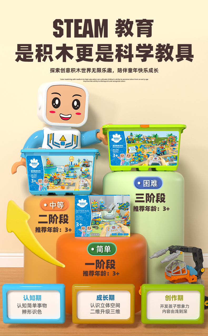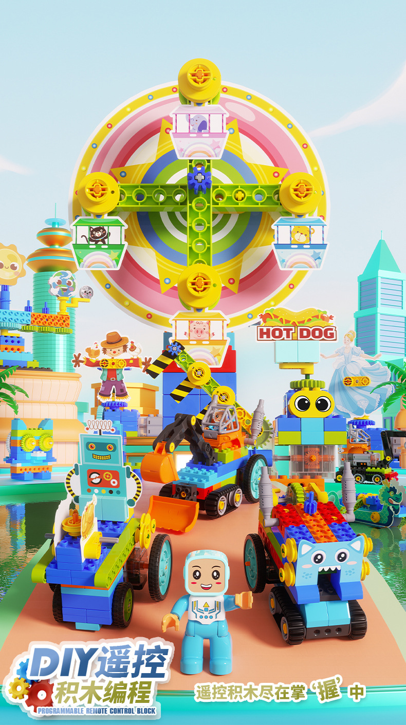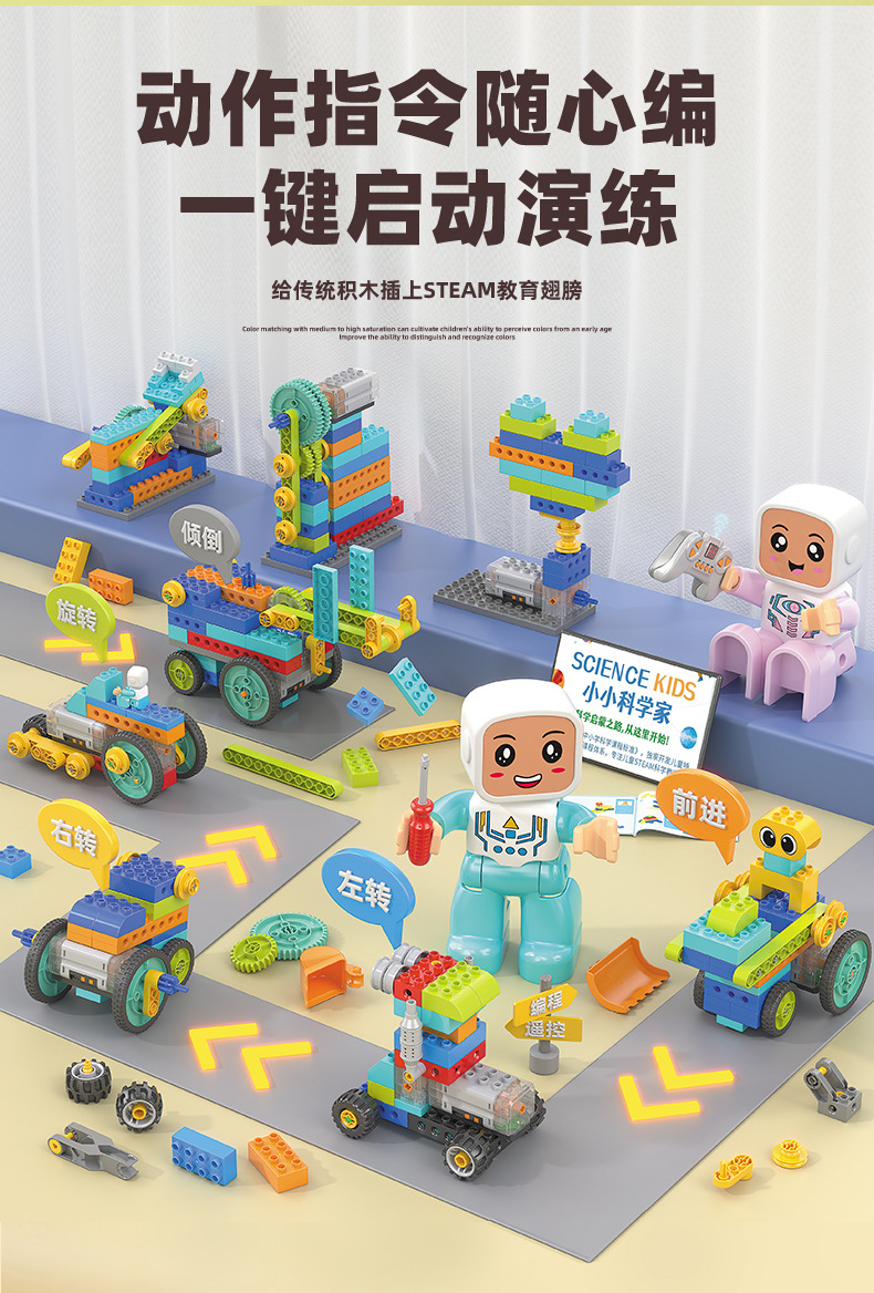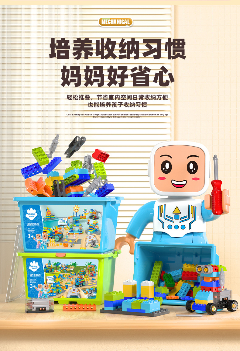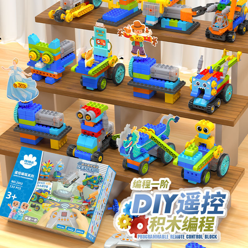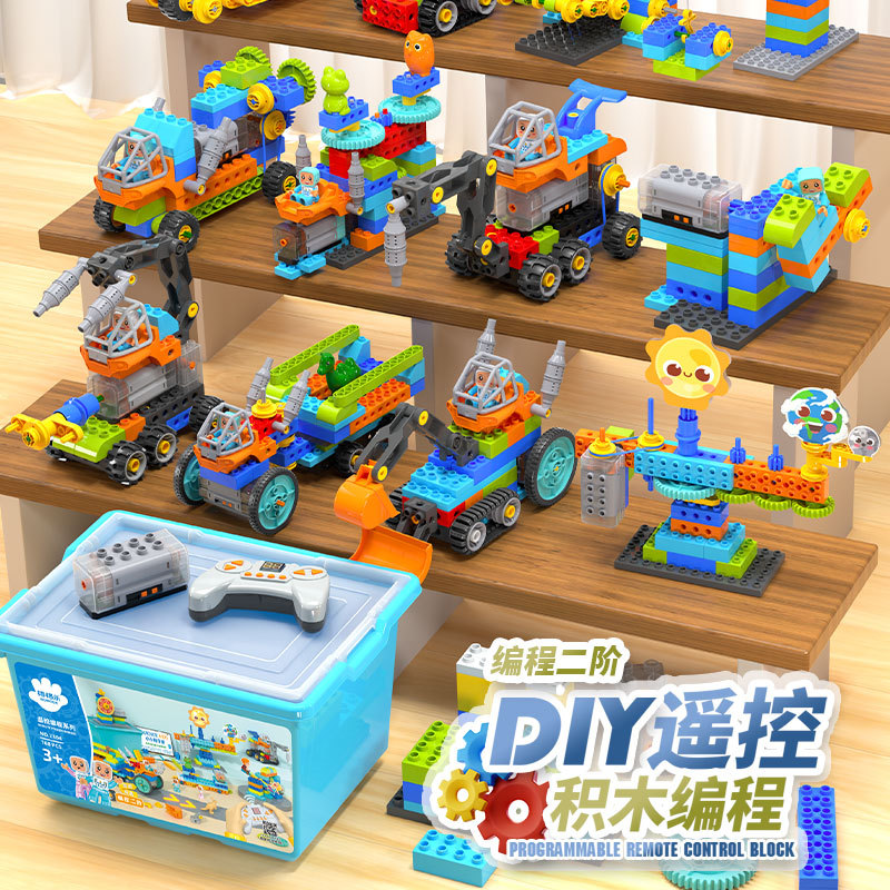 새로운 대형 입자 빌딩 블록 프로그래밍 원격 제어 어린이 STEAM 교육 과학 교육 보조 퍼즐 조립 장난감 저장