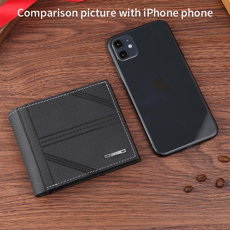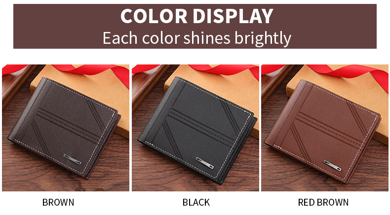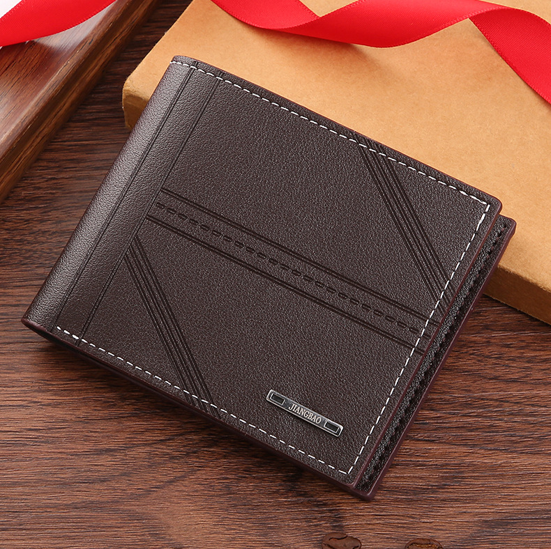 新款男士钱包男短款钱夹青年时尚压花横款软皮夹大容量多卡位钱包