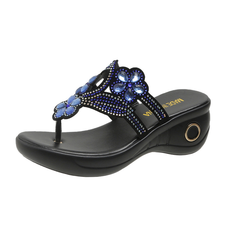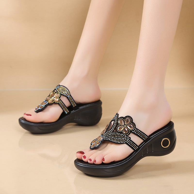 다년생 명소 대외 무역 플립 플롭 여성 2024 봄과 여름 새로운 컬러 라인 석 슬로프 여성용 샌들스토어 가기