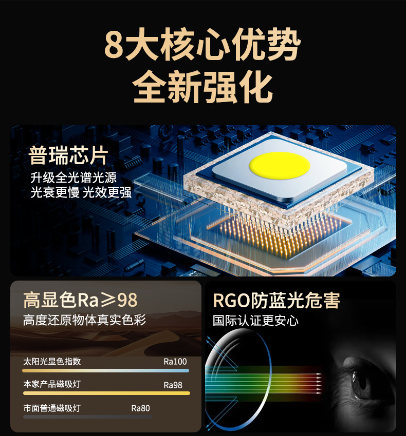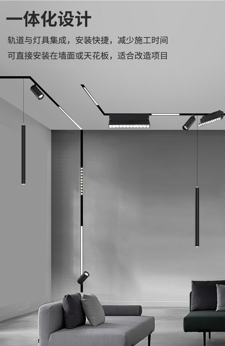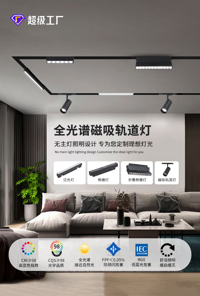 LED 전체 스펙트럼 자기 투광 조명 스마트 홈 장식 스포트라이트 거실 표면 장착형 숨겨진 내장형 자기 흡입 메인 조명 없음