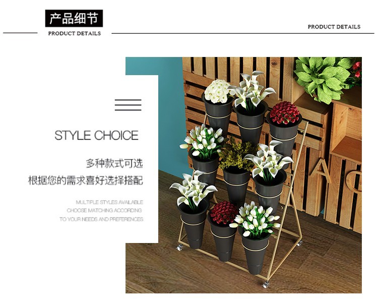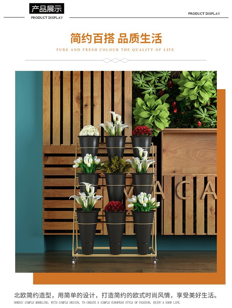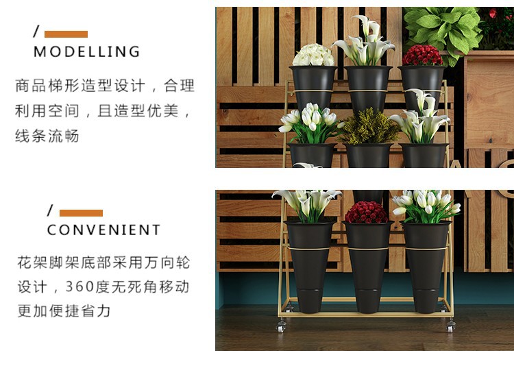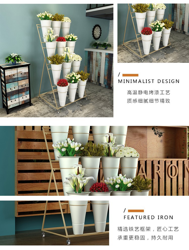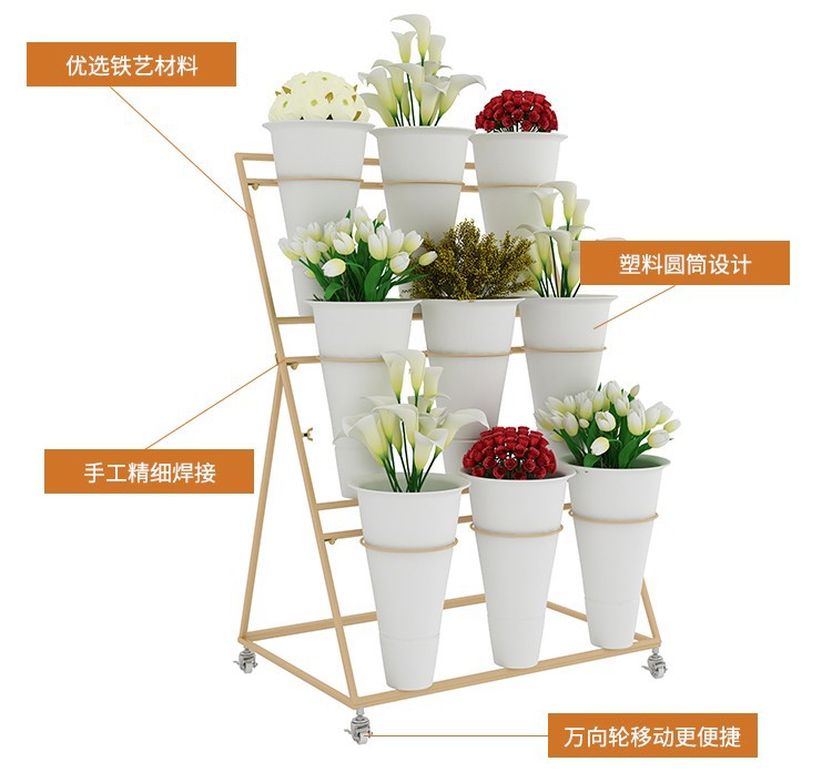 움직일 수있는 사다리 다층 꽃 디스플레이 스탠드 꽃 재배 및 꽃 각성 꽃 디스플레이 스탠드 꽃집 철 예술 꽃 버킷 스탠드스토어 가기