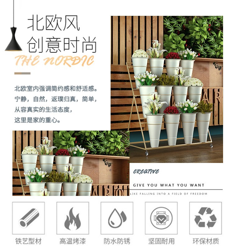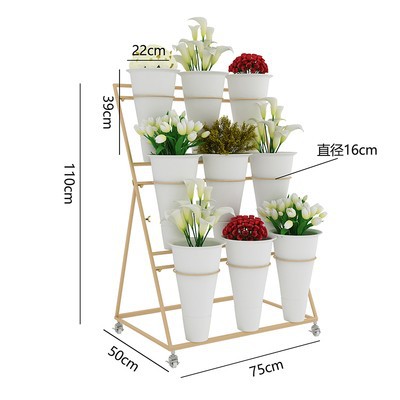 움직일 수있는 사다리 다층 꽃 디스플레이 스탠드 꽃 재배 및 꽃 각성 꽃 디스플레이 스탠드 꽃집 철 예술 꽃 버킷 스탠드