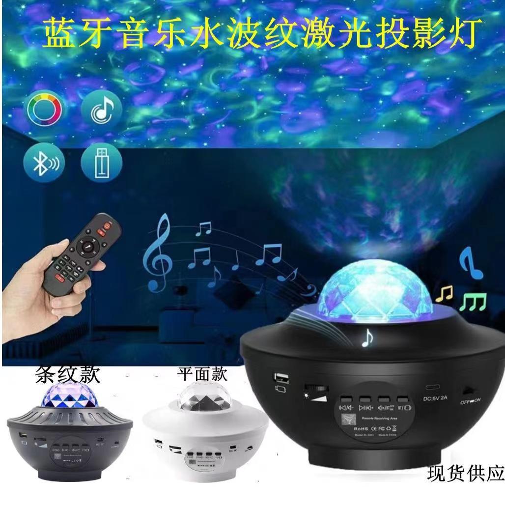 작은 밤을위한 국경 간 별이 빛나는 하늘 레이저 물 리플 프로젝션 램프 USB 블루투스 오디오 무대 램프 침실 분위기