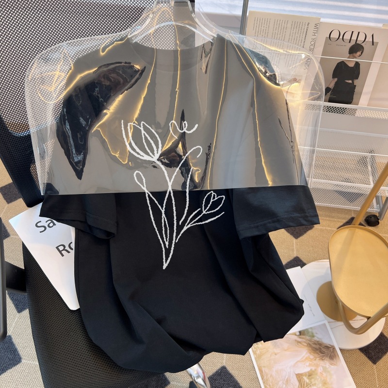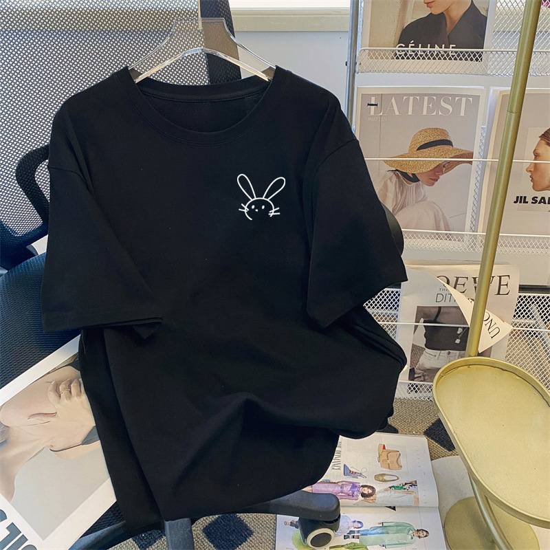 纯棉短袖T恤女2023夏季新款宽松韩版大码女装休闲百搭中长款