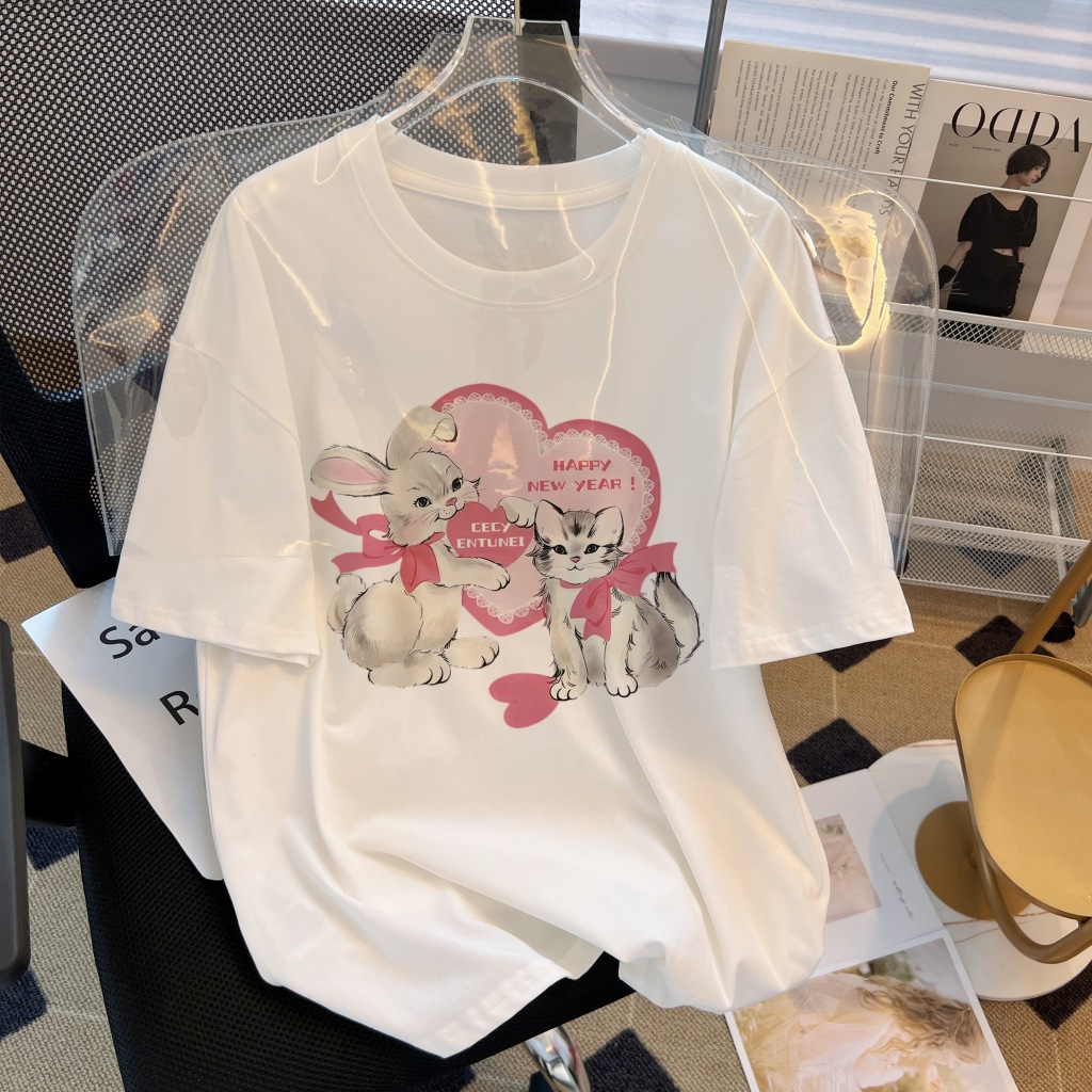 순면 반팔 티셔츠 여성 2026 여름 신상 한국 스타일 루즈핏 큰 사이즈 여성 캐주얼 만능 티셔츠 여성 상의