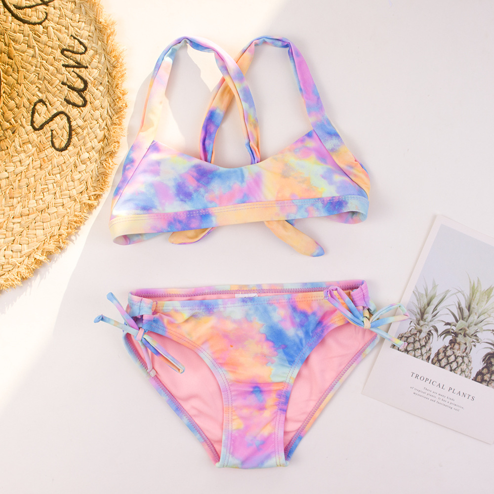 2024년 신상품 알리익스프레스 여아 수영복 타이다이 비키니 큰 아이들용 아마존 신상품 그라데이션 색상 403
