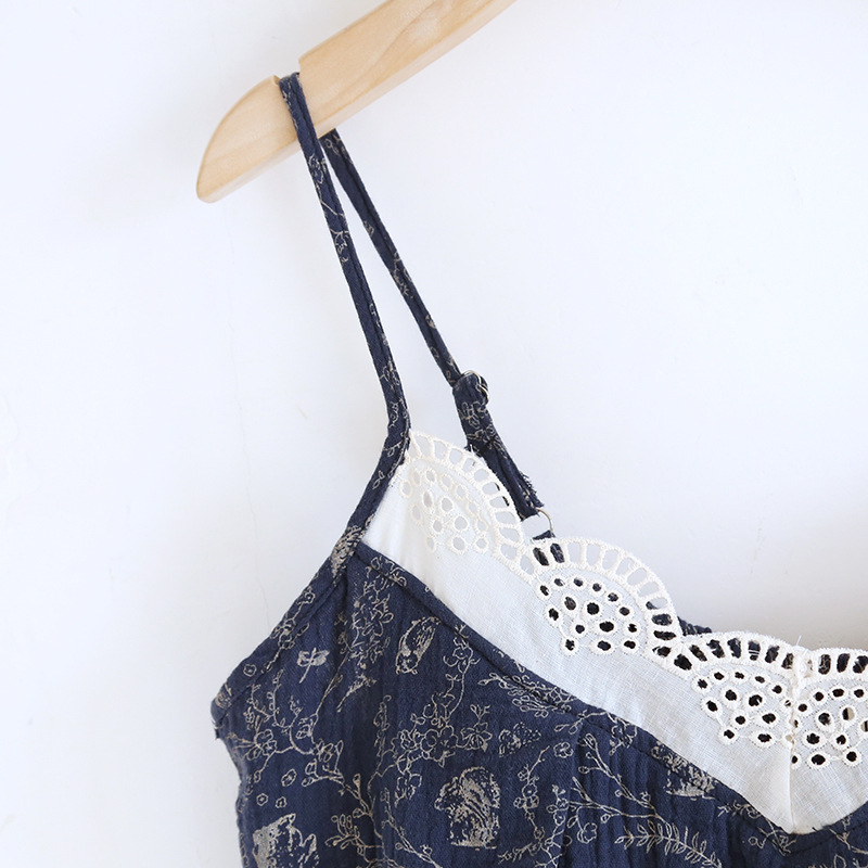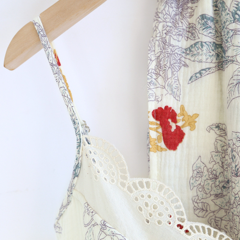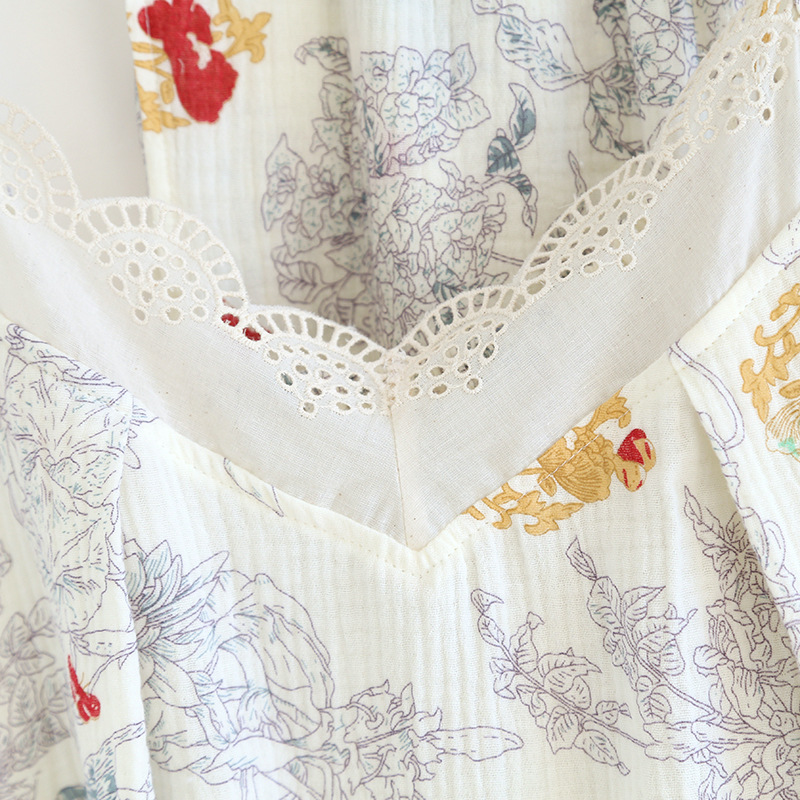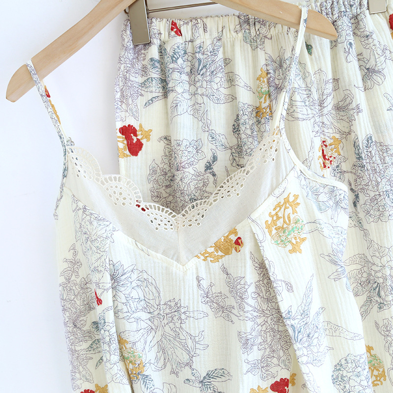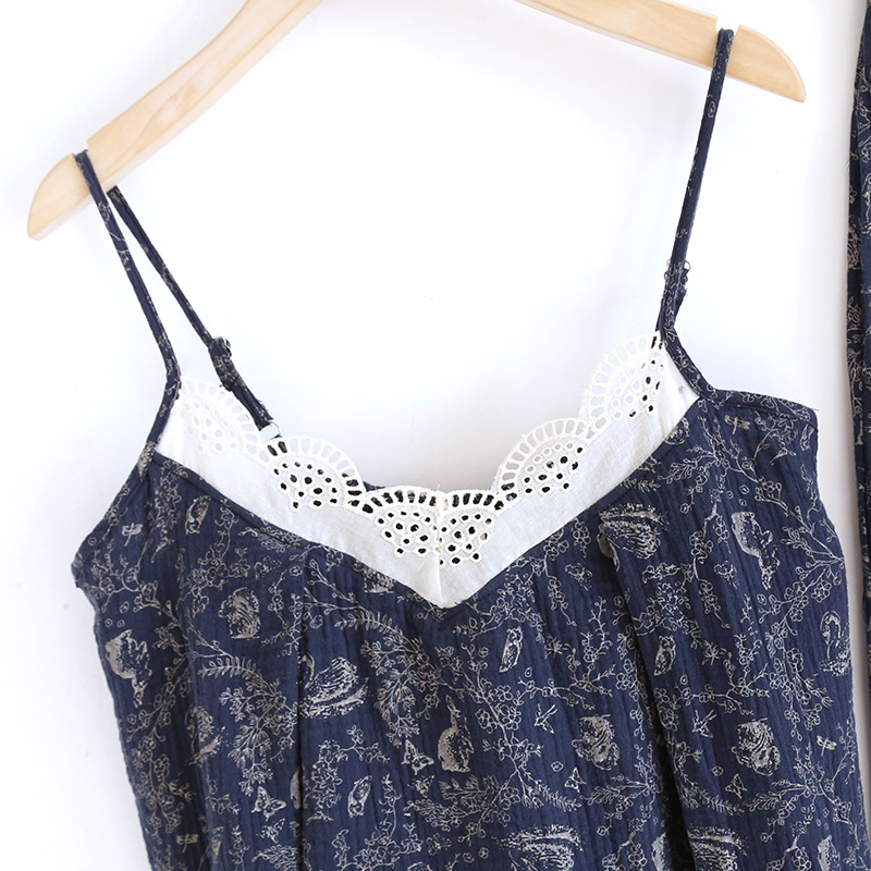 새로운 코튼 크레이프 3 피스 잠옷 여성용 긴팔 카디건 스트랩 레이스 스위트 스타일 홈웨어 세트