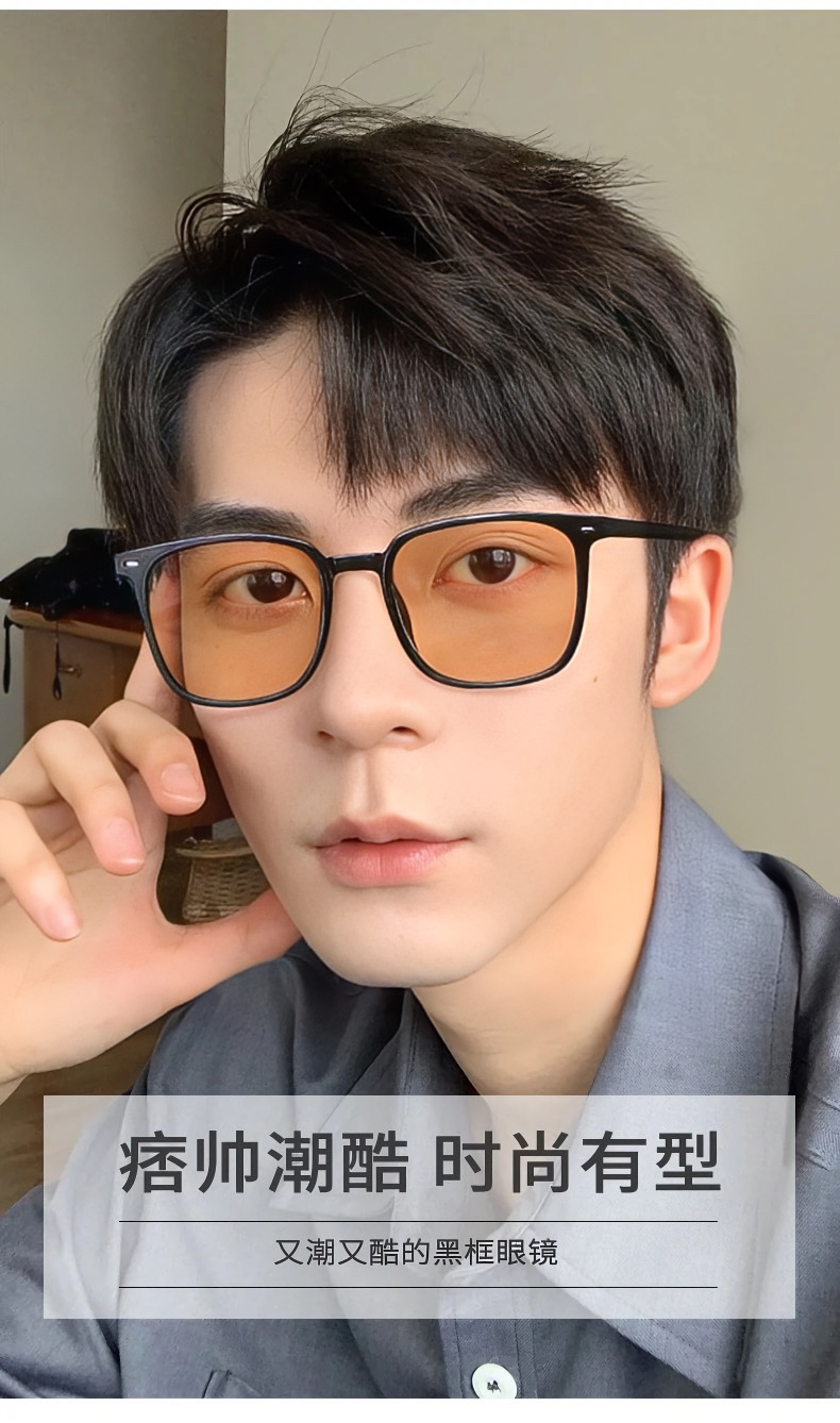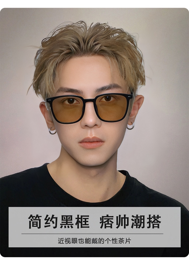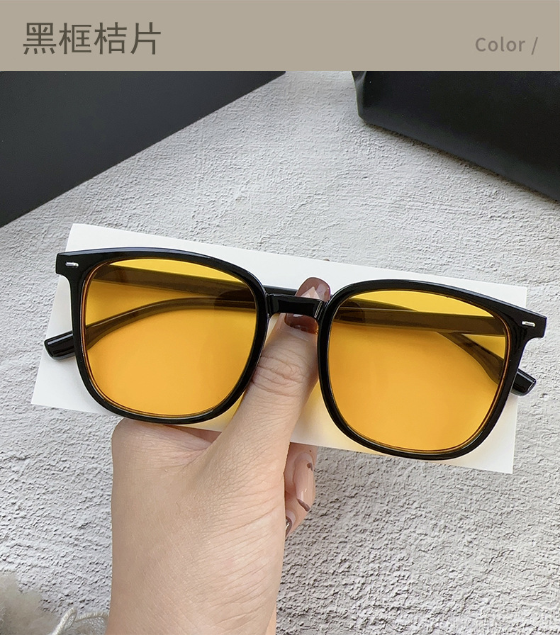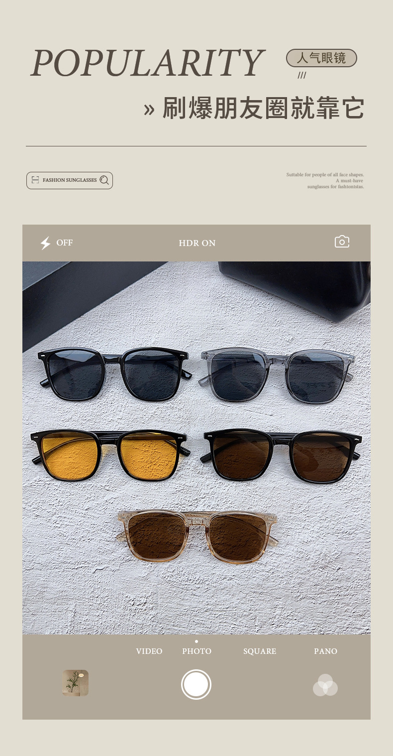 새로운 블랙 프레임 황갈색 선글라스 남성용 하이 엔드 감각 러피 잘 생긴 차양 방지 자외선 선글라스 여성용 한국 패션 박스스토어 가기