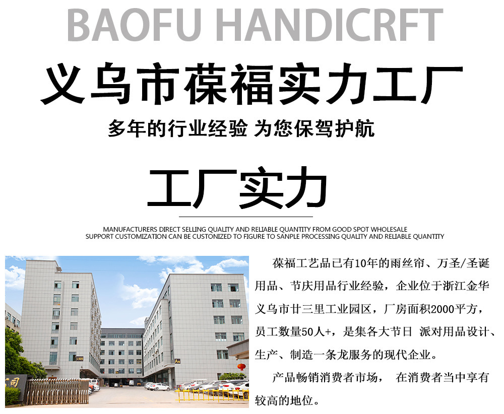 1、产品说明: 本店主营圣诞节、万圣节、节庆用品,绝大多数的商品坚持性价比的原则,但是每位顾客的要求 和挑剔程度不同。季节性节庆产品又有它的特殊性,我们无法保证每个产品的 十全十美,由于批量生产,难免会有细微瑕疵,但不会影响您的使用,如有严重质量问题,我们会及时给你您解决。请无法接受细微瑕疵的亲三思而后拍!包装如有特殊需求请先与客服确认后下单备注。