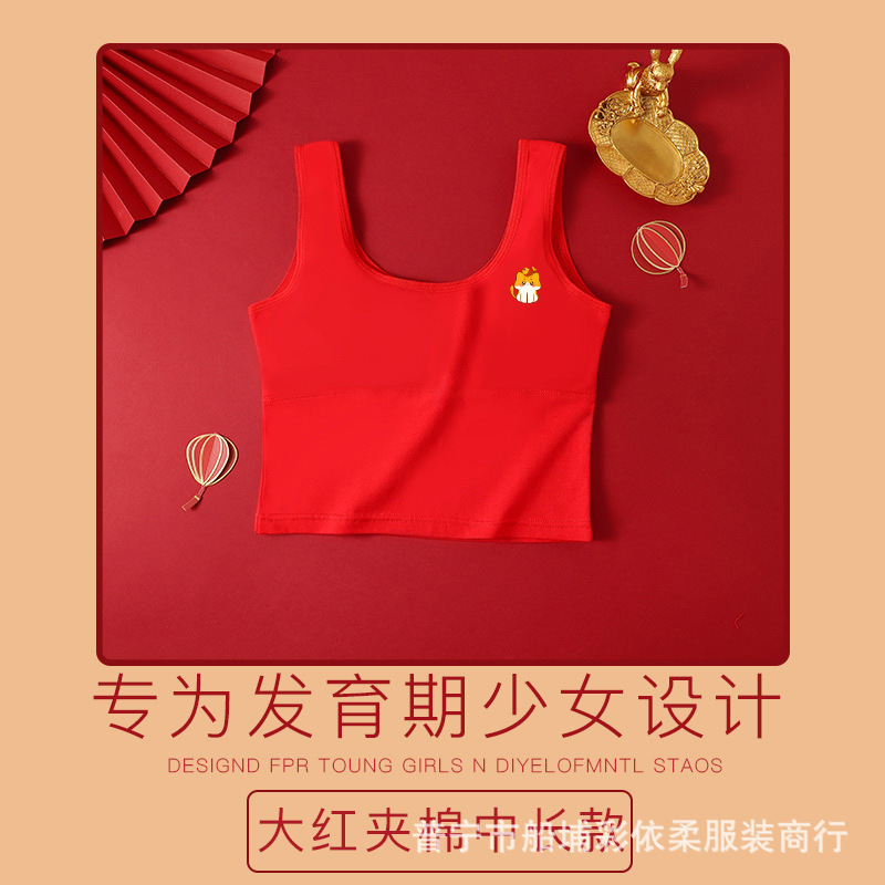 2026 여아 발달기 소녀 중학생 학생의 생년월일을 맞는 빨간색 속옷 순면 조끼스토어 가기
