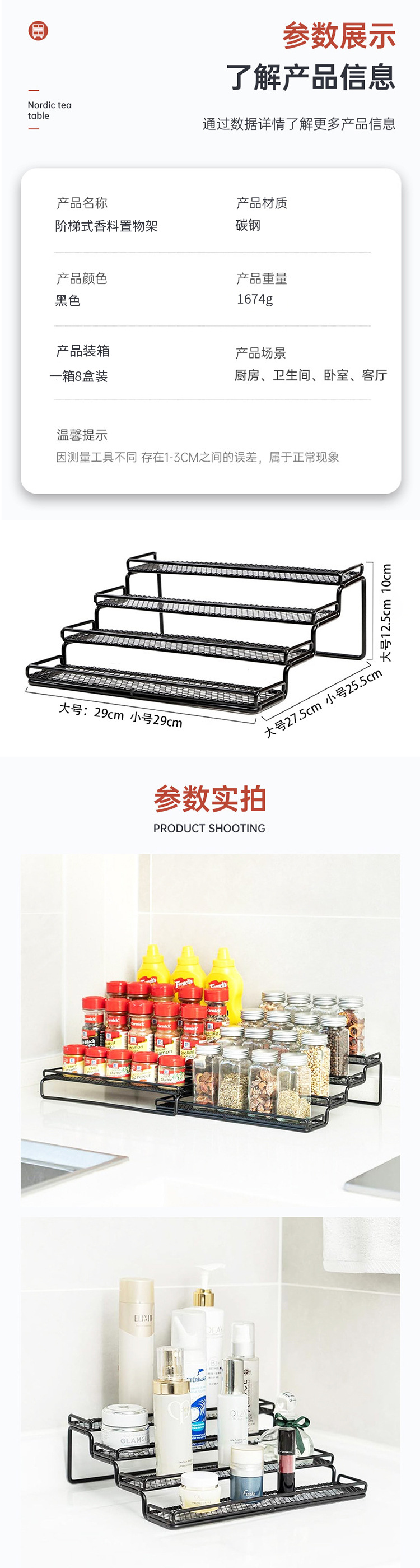 일본식 주방 스텝핑 스파이스 랙 4 층 가정용 다층 철제 조미료 보관 랙 데스크탑 조미료 보관 랙