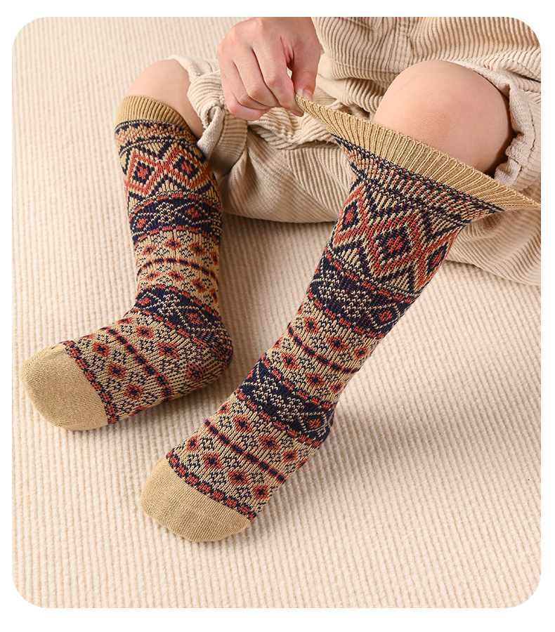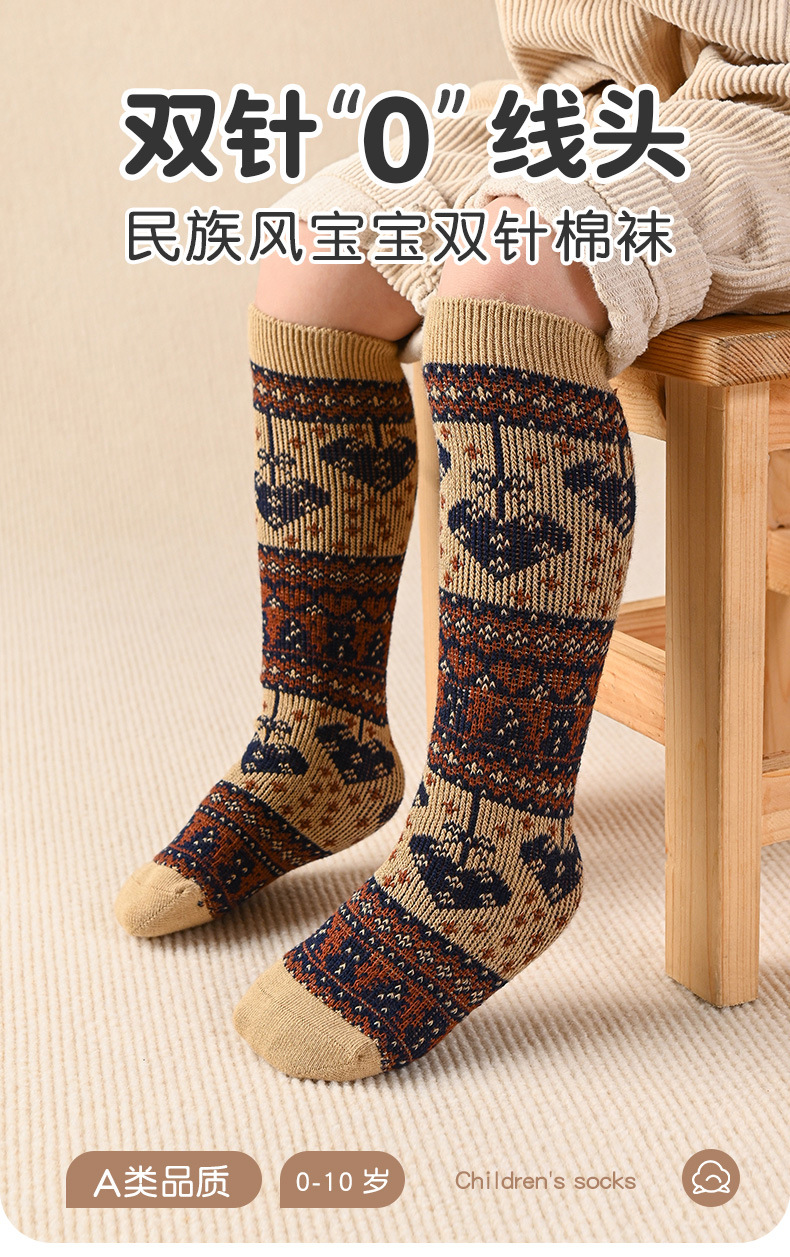 송아지 양말 아기 양말 봄과 가을 아기 높은 튜브 어린이 어린이 긴 튜브 뒤꿈치 양말 두 배 바늘 실 끝 복고풍