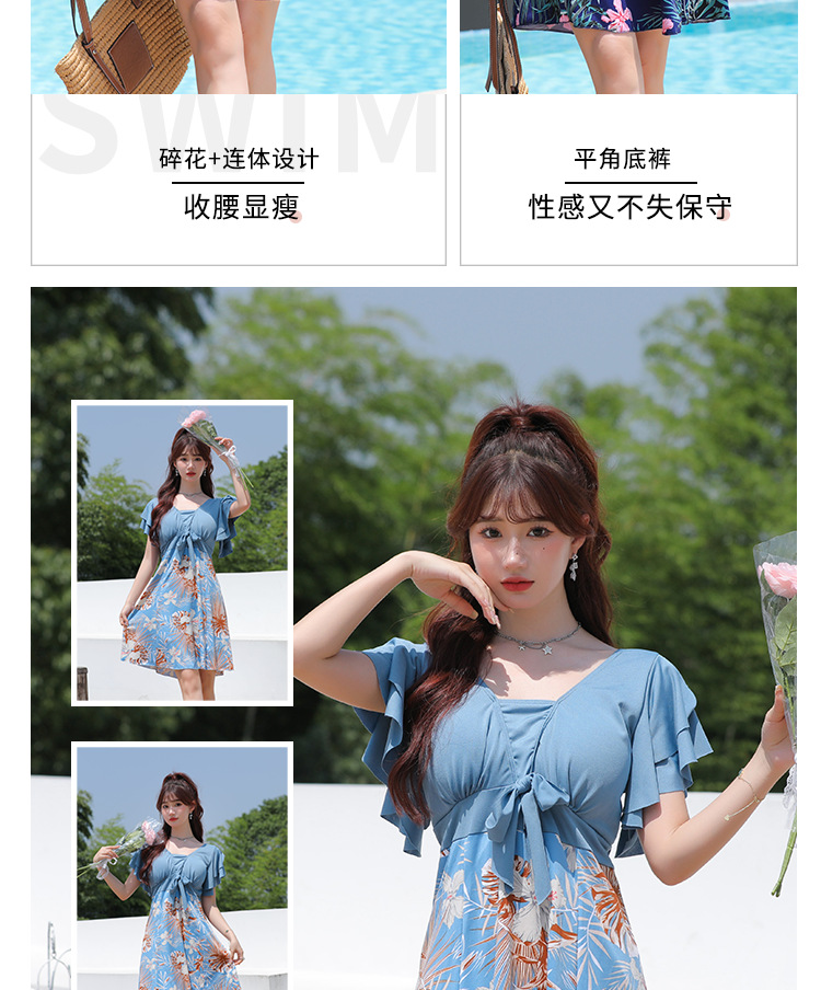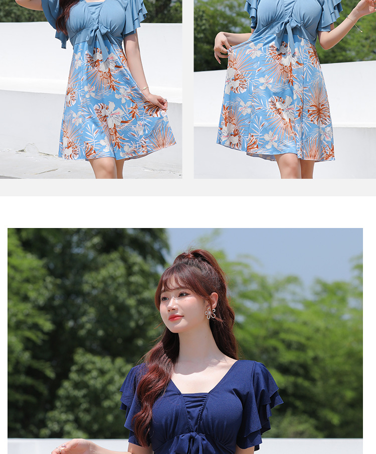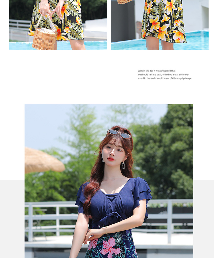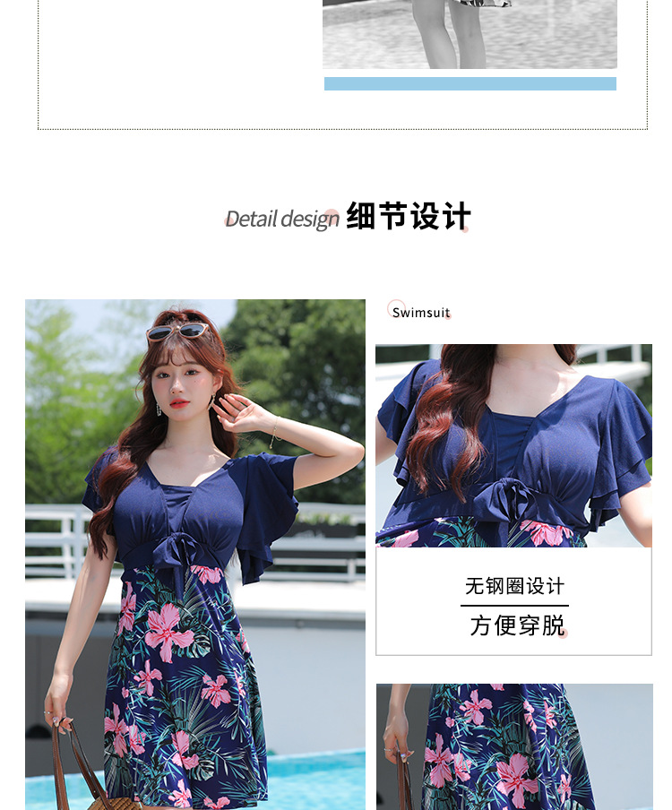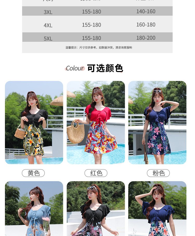 여성 수영복 플러스 사이즈 꽃 원피스 원피스 배꼽 커버 슬리밍 보수적 온천 해변 휴가 수영복