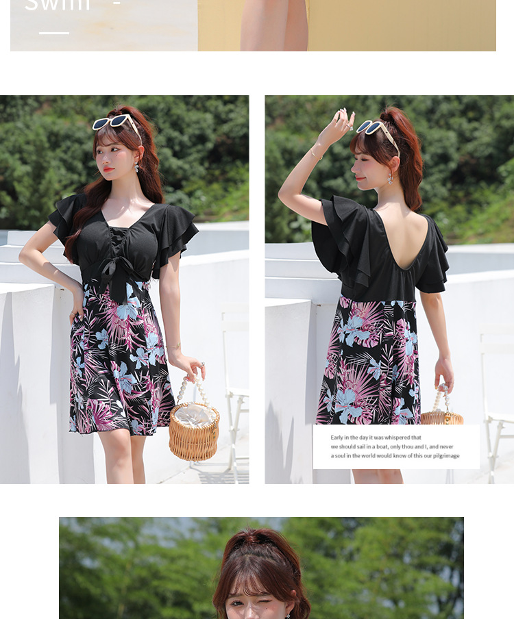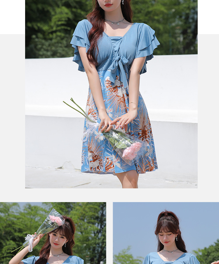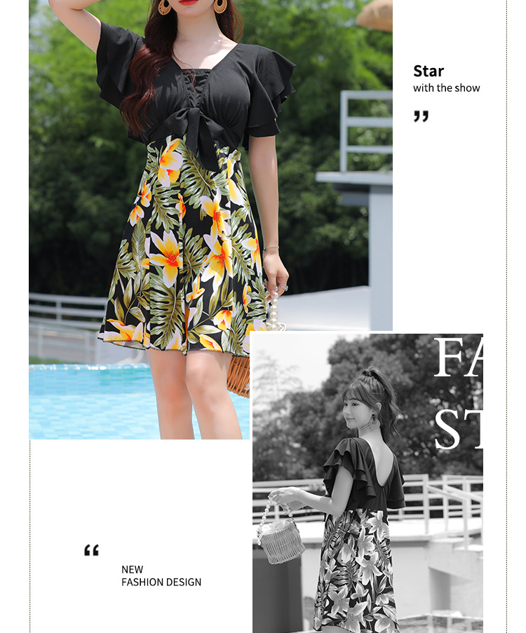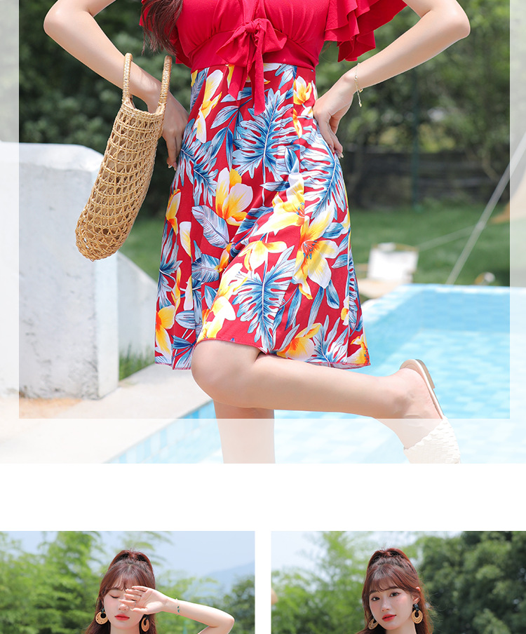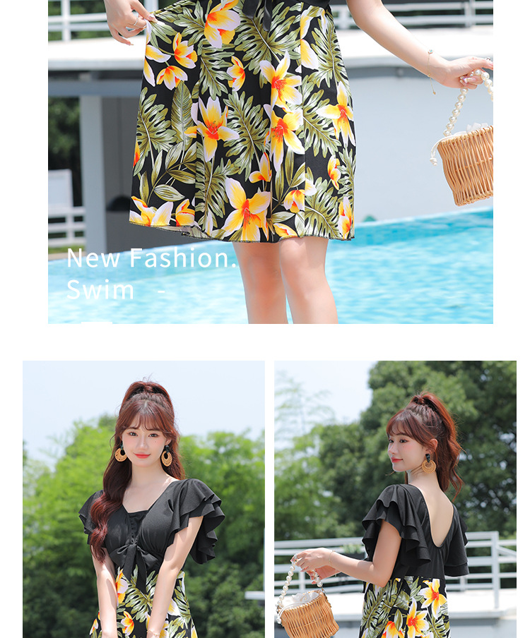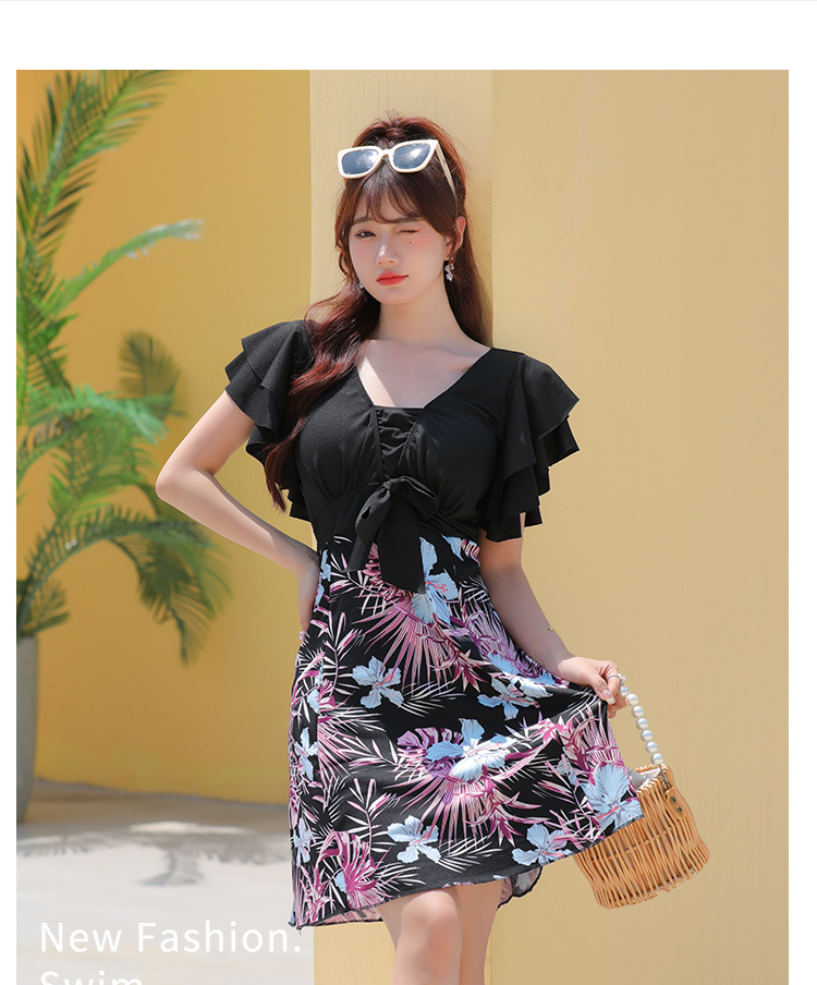 여성 수영복 플러스 사이즈 꽃 원피스 원피스 배꼽 커버 슬리밍 보수적 온천 해변 휴가 수영복