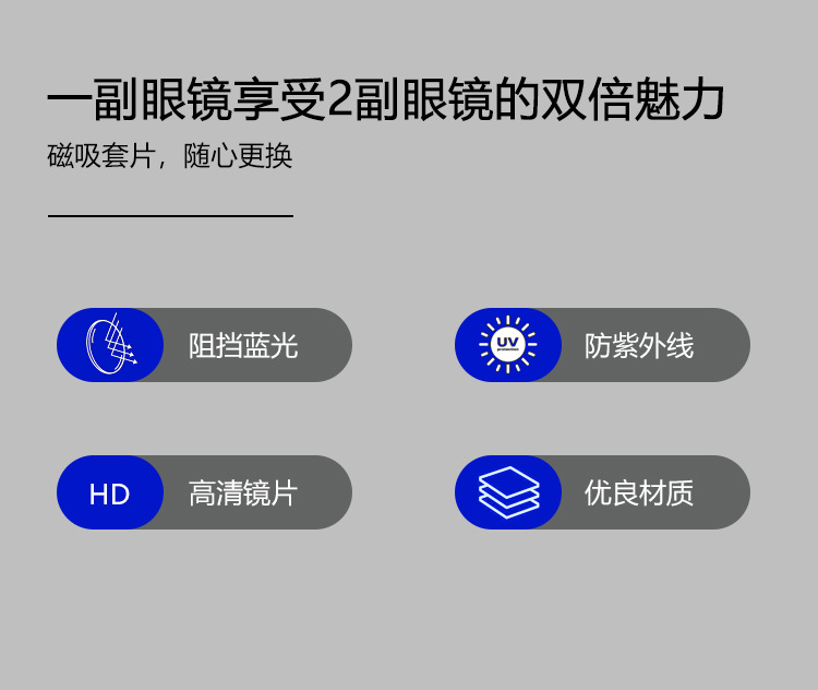 브릴리언트 라이프 마이크로파광 미러 블루라이트 차단 평면 미러 선글라스 2-in-1 음이온 패션 기능성 안경