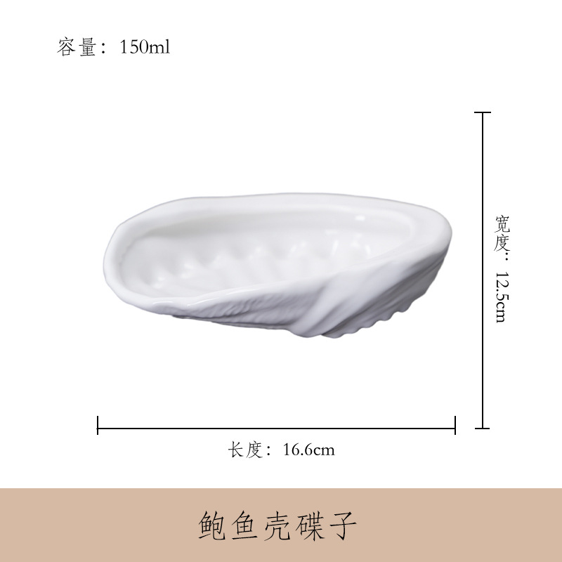 【品名】创意日式料理陶瓷寿司刺身鲍鱼壳盘凉菜盘生蚝壳碟不规则菜碟精致量大价优,可印LOGO