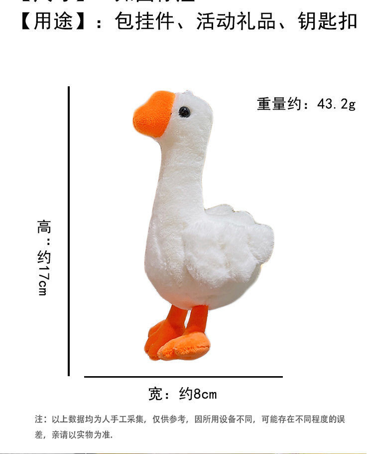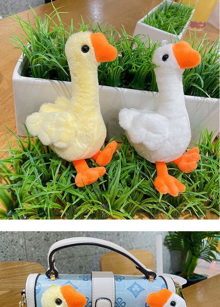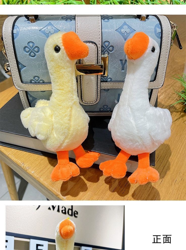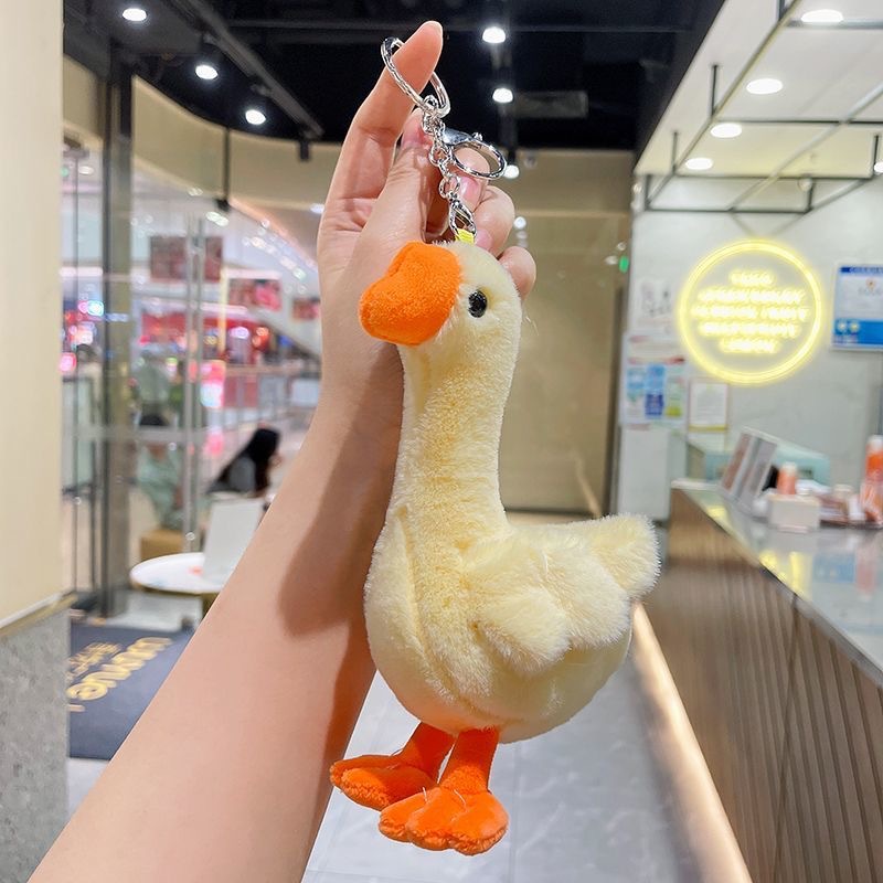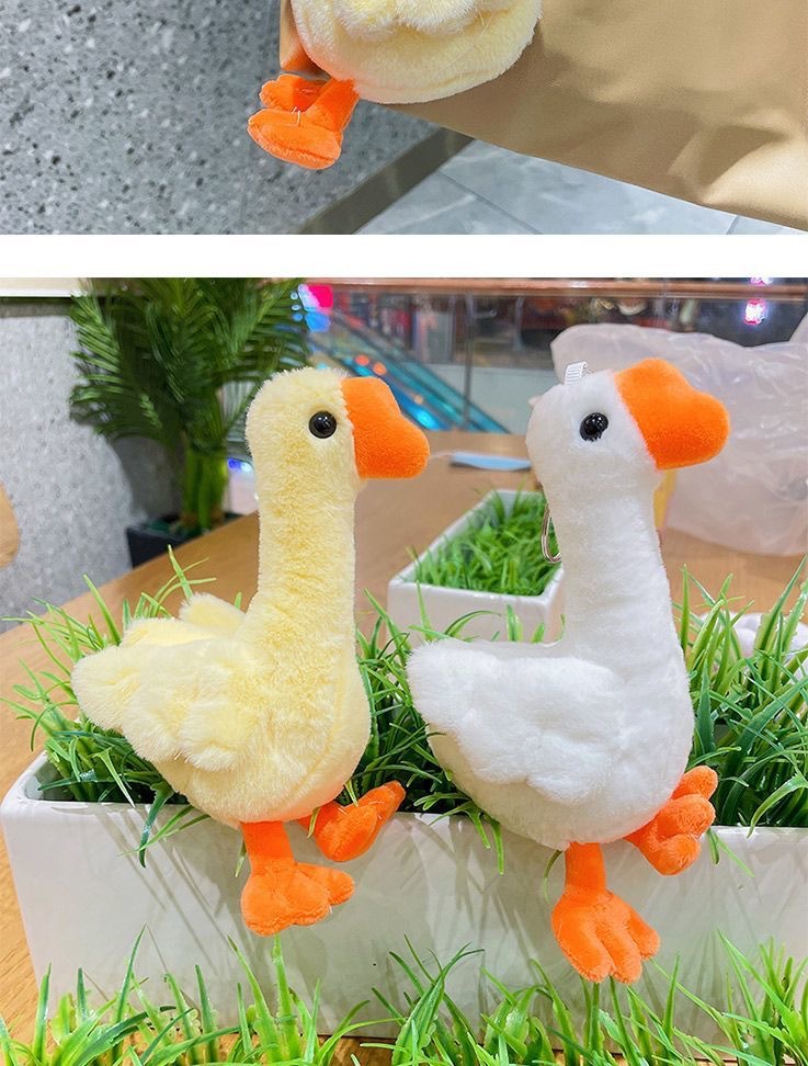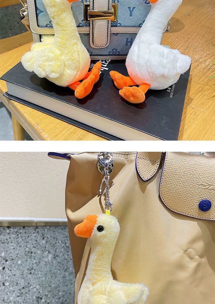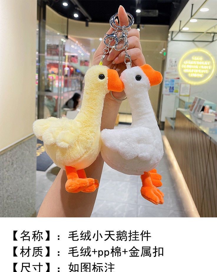 귀여운 큰 흰색 거위 봉제 인형 펜던트 작은 노란색 오리 봉제 자동차 키 체인 여성 학생 학교 가방 펜던트 보석