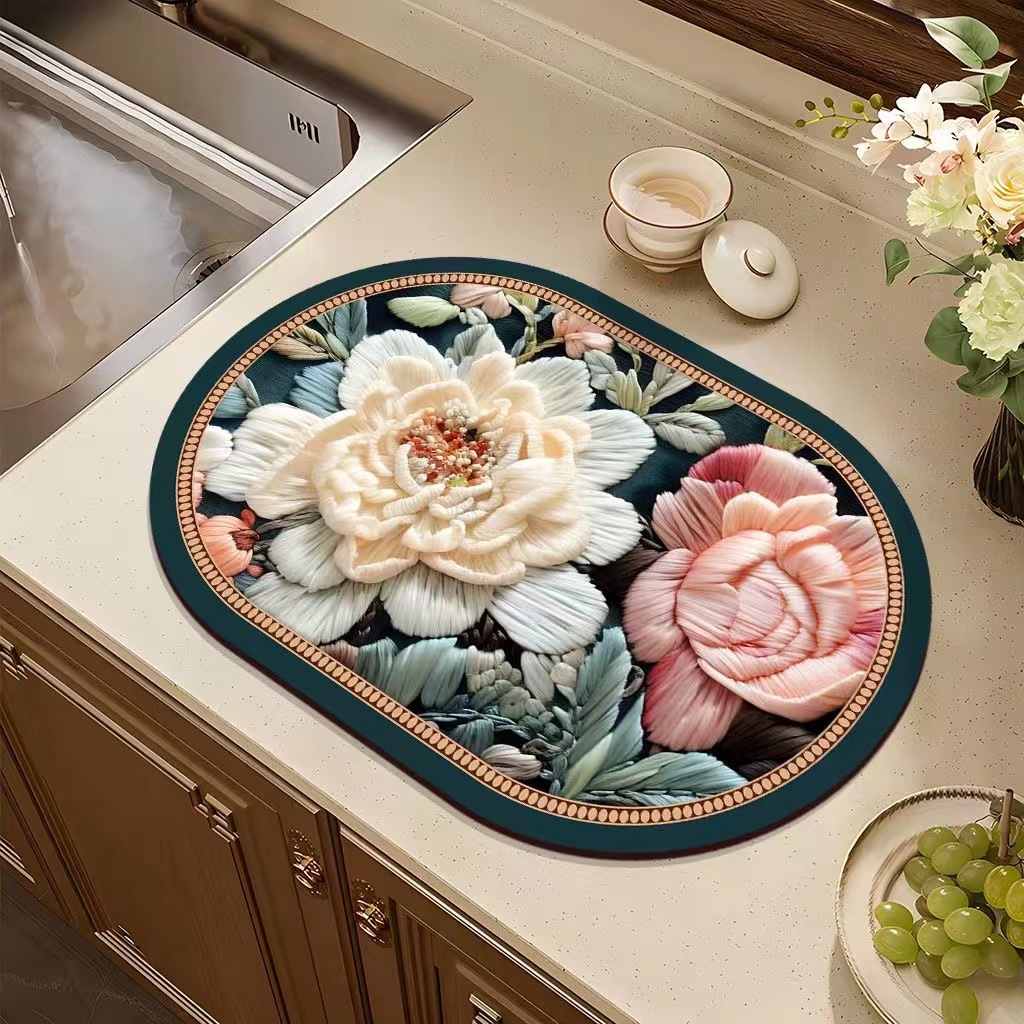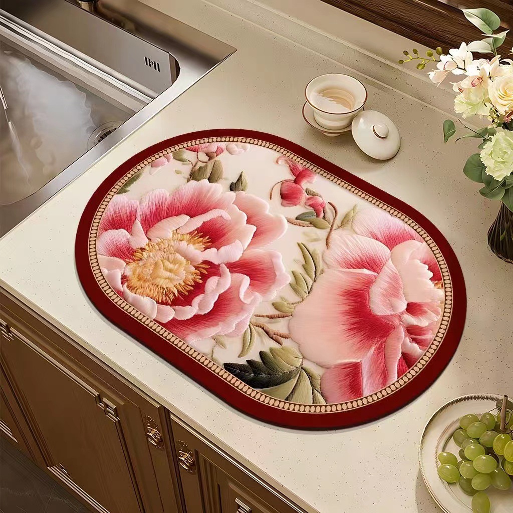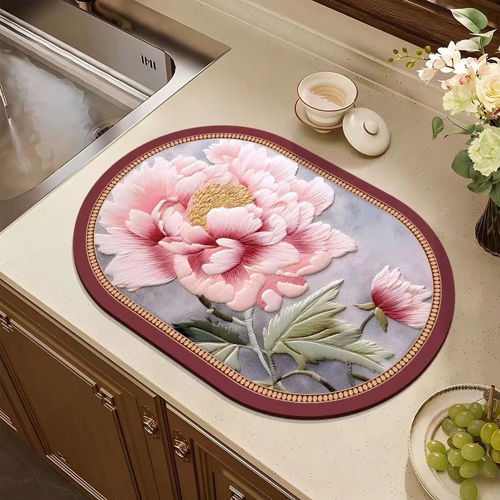 중국 스타일의 식사 매트 배수 매트 라이트 고급 가정용 단열 흡수성 빠른 건조 테이블 매트 주방 diatom 진흙 미끄럼 방지
