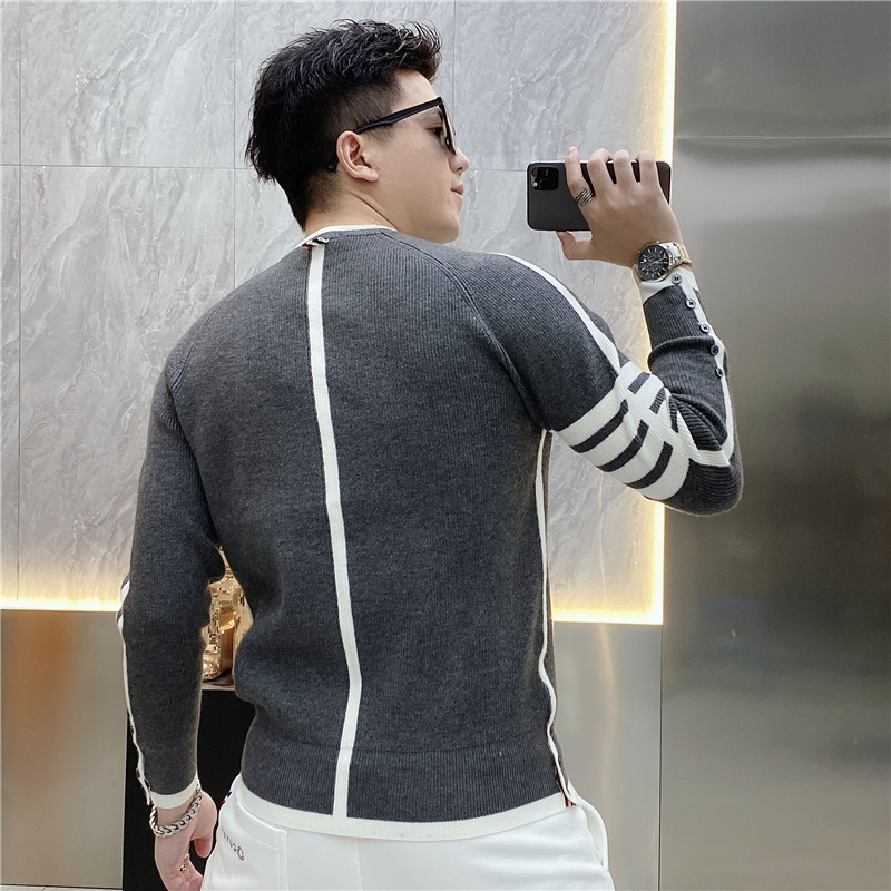 긴 소매 새로운 청소년 가을과 겨울 다목적 스트라이프 스웨터 패션 풀오버 간단한 라운드 넥 스웨터 트렌디 한 2023 남성스토어 가기