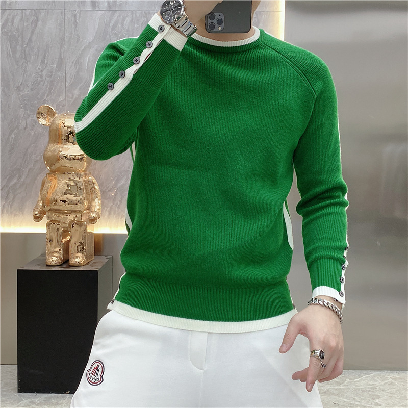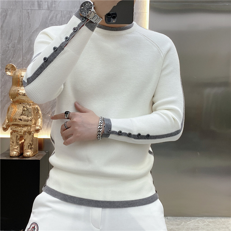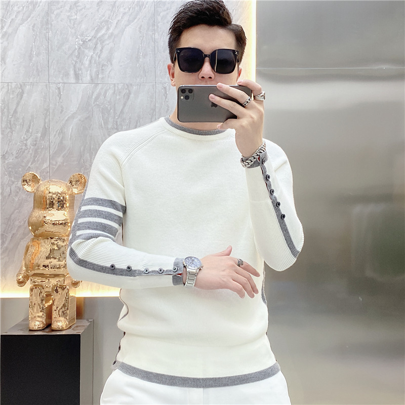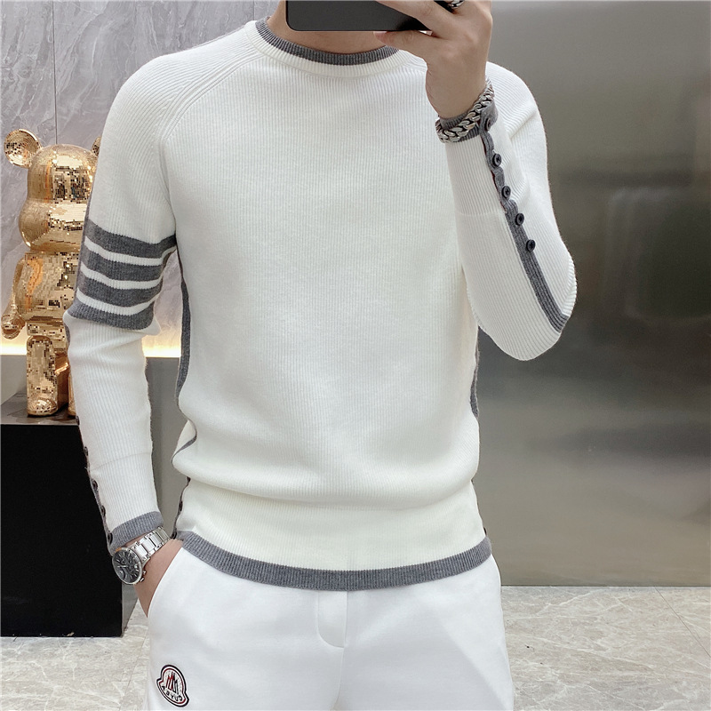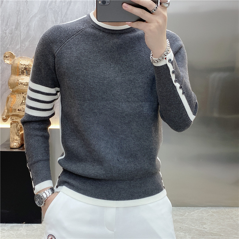 긴 소매 새로운 청소년 가을과 겨울 다목적 스트라이프 스웨터 패션 풀오버 간단한 라운드 넥 스웨터 트렌디 한 2023 남성