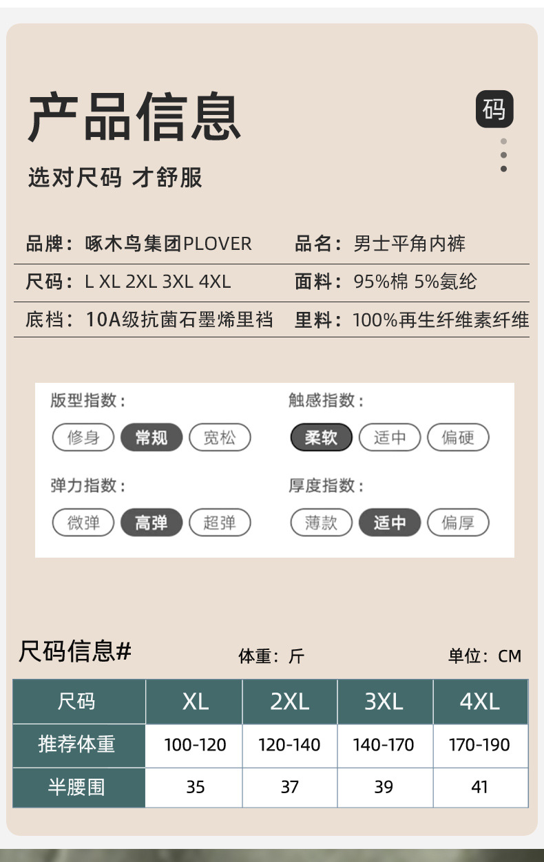 纯棉内裤男  内裤男款高端  男士内裤全棉