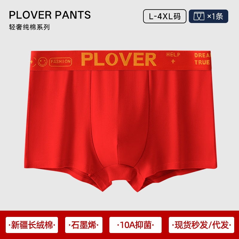 内裤男平角纯棉  男士平角裤  男款内裤  红内裤男