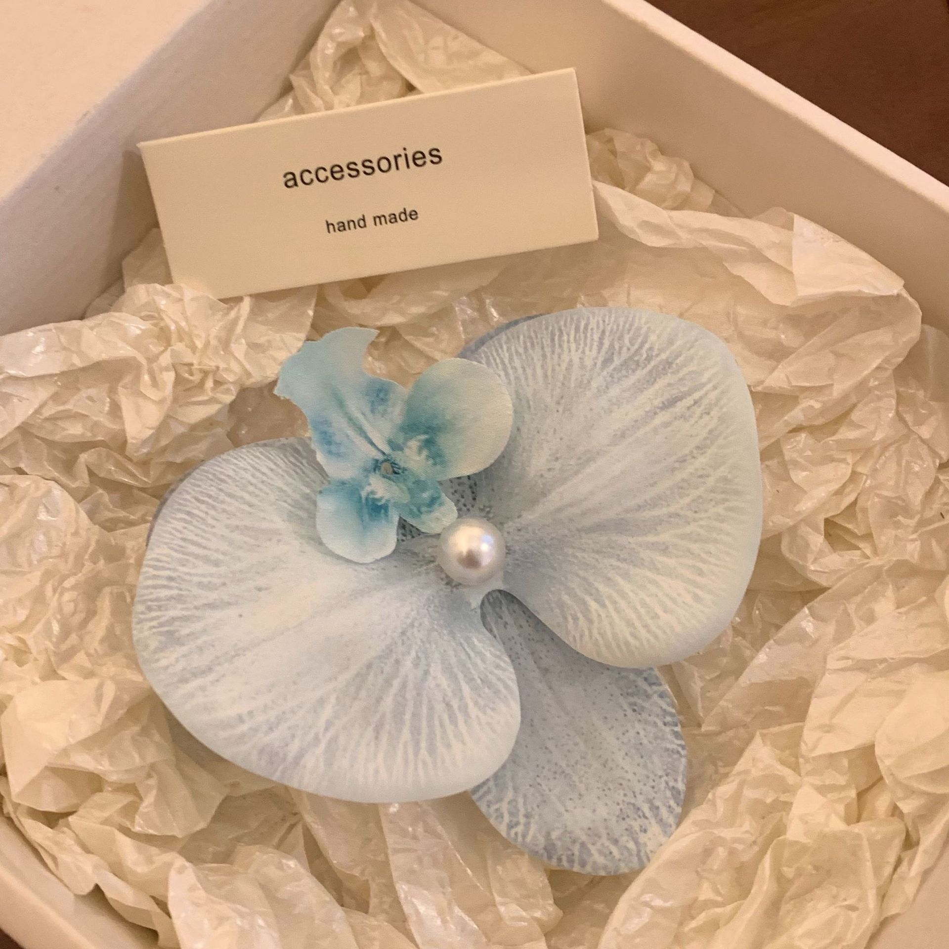 • 파란색과 흰색-호접란 진주 머리핀
