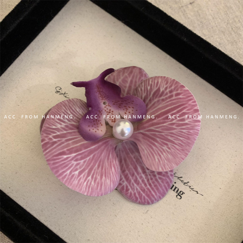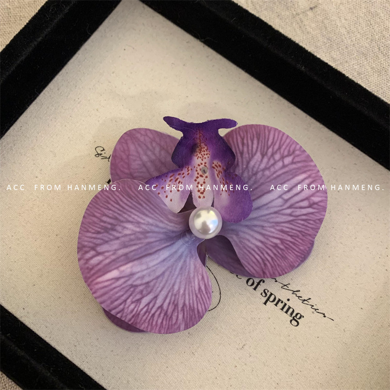 • 기질 보라색-호접란 진주 머리핀