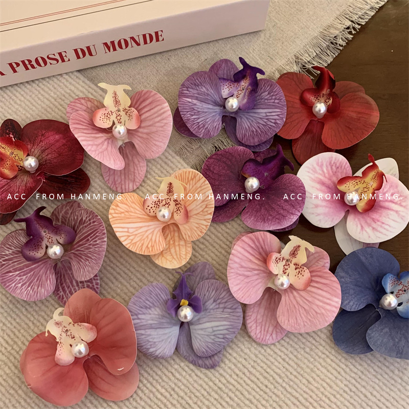여성을위한 한국 달콤한 인공 호접란 헤어핀 헤드웨어 슈퍼 불멸의 난초 프린지 사이드 파편형 헤어 헤드웨어
