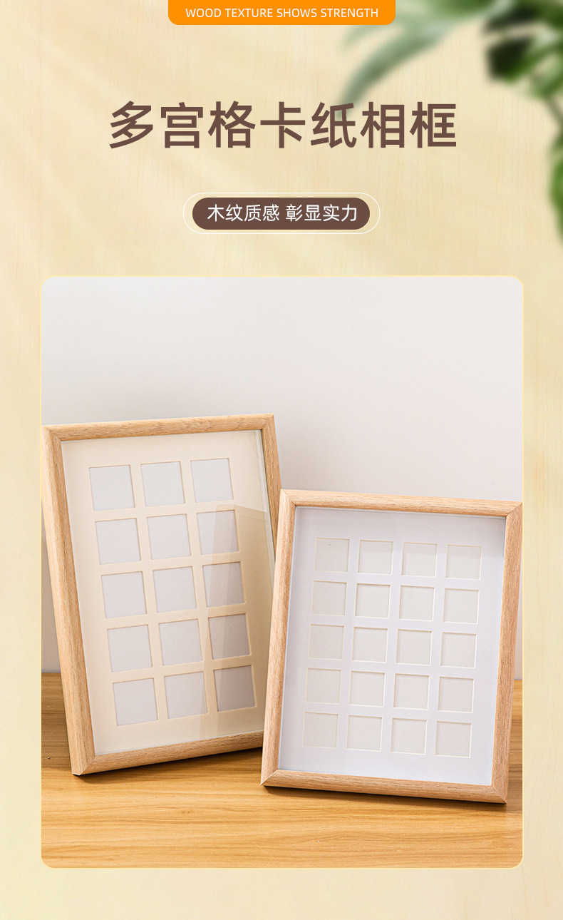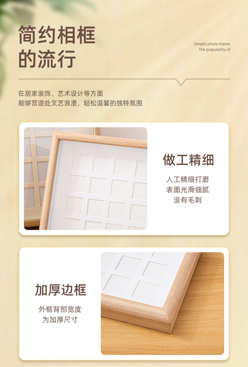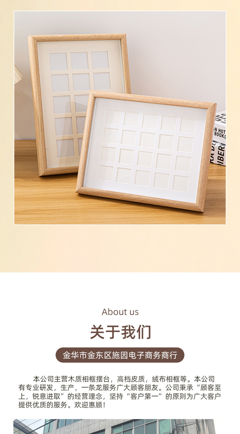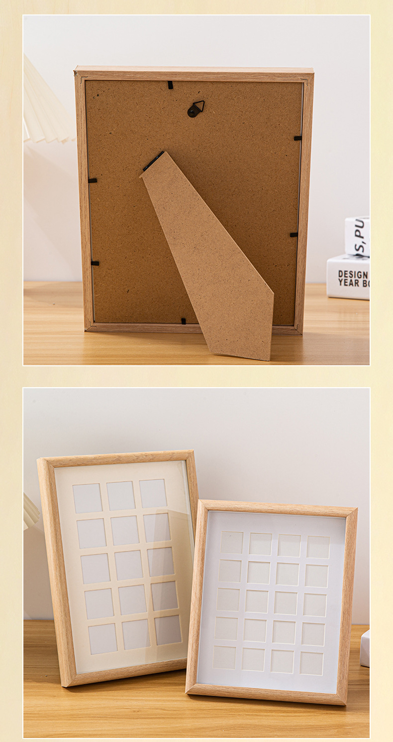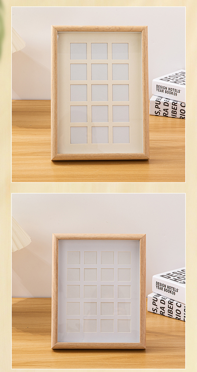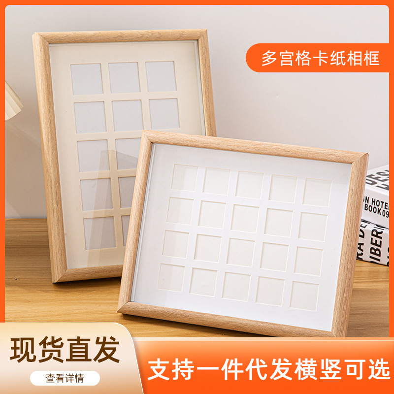 DIY 단단한 나무 사진 프레임 멀티 그리드 손으로 그린 오일 파스텔 액자 사각형 9 그리드 사진 프레임 테이블 도매스토어 가기