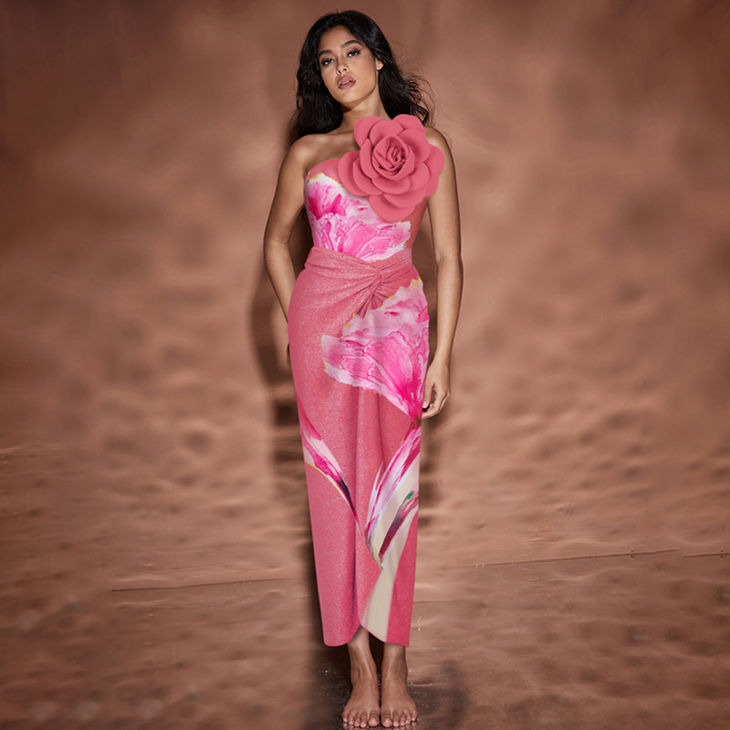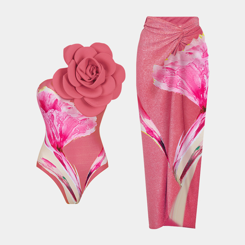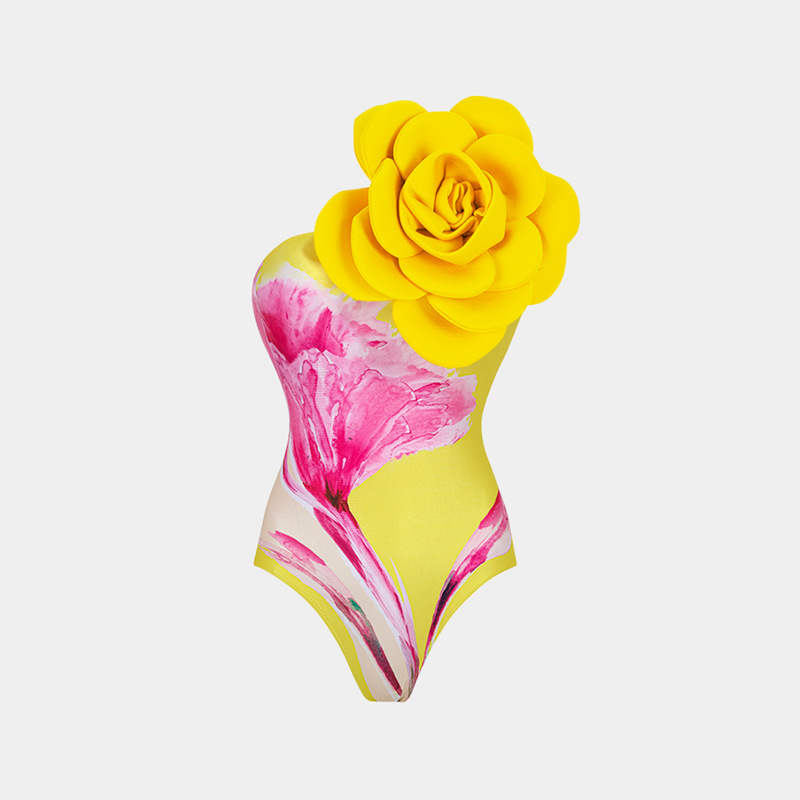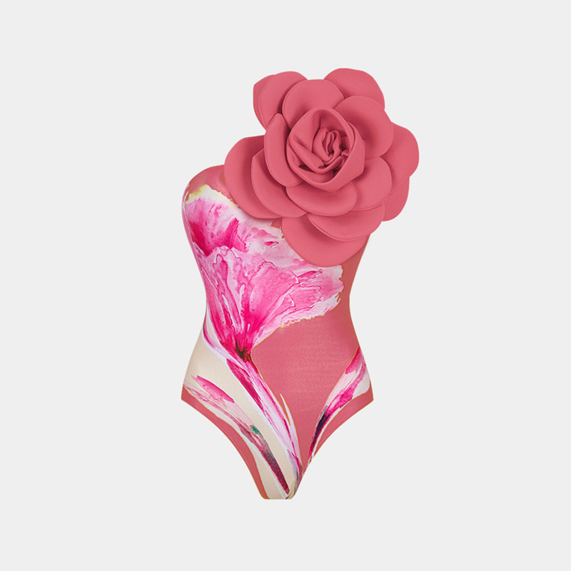 2024 유럽과 미국의 새로운 아마존 AliExpress 3D 큰 꽃 장식 인쇄 원피스 수영복 여성의 국경 핫스토어 가기